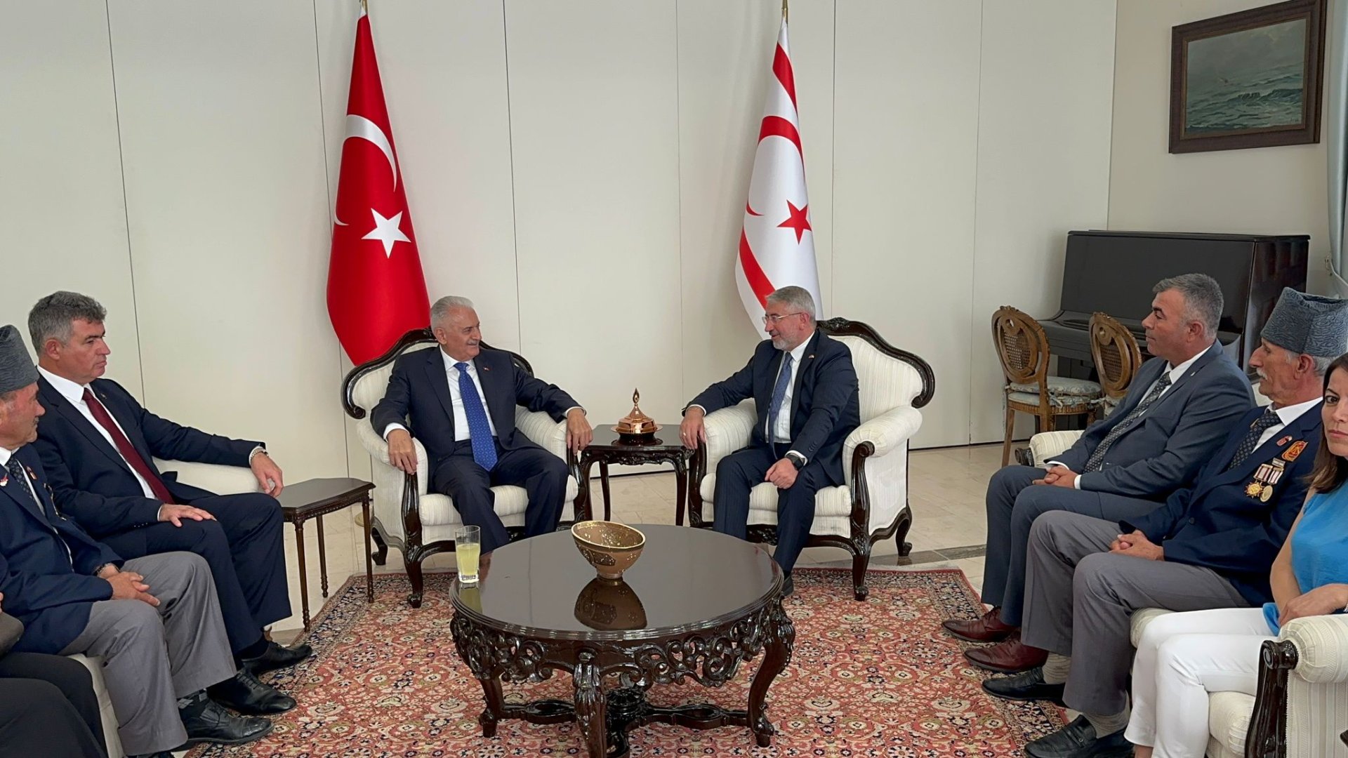KKTC’nin Beyarmudu Belediyesi ile kardeş şehir protokolü imzalamak üzere Kuzey Kıbrıs Türk Cumhuriyetine giden Belediye Başkanı Dr. Halil İbrahim Aşgın ve Çorum heyeti burada eski başbakan ve AK Parti Genel Başkanvekili Binali Yıldırım ile buluştu.