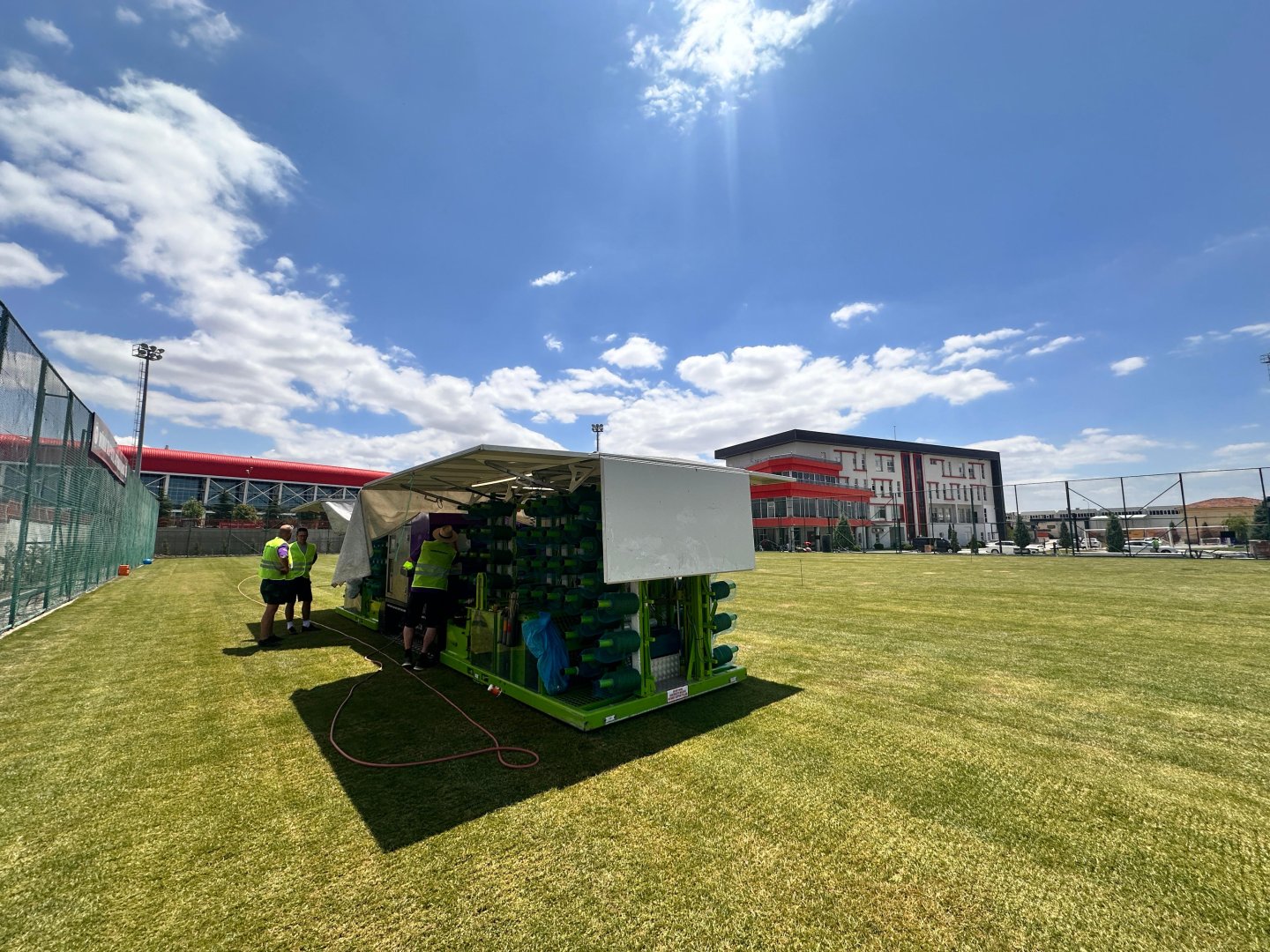 Arca Çorum FK Başkanı Oğuzhan Yalçın ile birlikte değerlendirmelerde bulunan Belediye Başkanı Dr. Halil İbrahim Aşgın “Belediye olarak Arca Çorum FK takımımıza destek vermeye devam ediyoruz. Kulüp tesisleri içerisinde bulunan antrenman sahalarında sezonun bitmesi ile birlikte çalışmalar başlattık. Önce antrenman sahalarının ikisinde de çim kaldırma, drenaj ve tefsiye işlemlerini tamamladık. Küçük antrenman sahasında alttan ısıtma işlemleri de tamamlandı ve hem suni hem de hibrid çim işlemleri devam ediyor. Bu tür uygulama antrenman sahalarında Barcelona, Liverpol gibi büyük takımların yanı sıra Türkiye’de Galatasaray, Beşiktaş, Fenerbahçe ve Başakşehir Futbol Kulübünde var. Bir de bu uygulama Çorum FK’da var. Hem sentetik hem çim uygulaması, alttan ısıtması olan bir antrenman sahası bölgede yok. Olması gereken de bu. Çorum Şehir Stadyumu dahil birçok stadyumda uygulanan bu sistemin Çorum Futbol Kulübümüzün antrenman sahasında da olması mutluluk verici. Yapılan bu sistem sayesinde antrenman sahaları yaz-kış bozulmadan, futbolcularımızın sağlığına zarar vermeden kullanılabilecek. Çevre düzenlenmeleri konusunda çalışmalarımızı sürdürüyoruz. Ağaçların dikim işlemleri devam ediyor. Çevre düzenlemesinin tamamlanmasıyla birlikte Türkiye’nin en güzel futbol tesisleri olacak. Bu yolun sonu şampiyonluk ve süper lig olsun” ifadelerini kullandı.