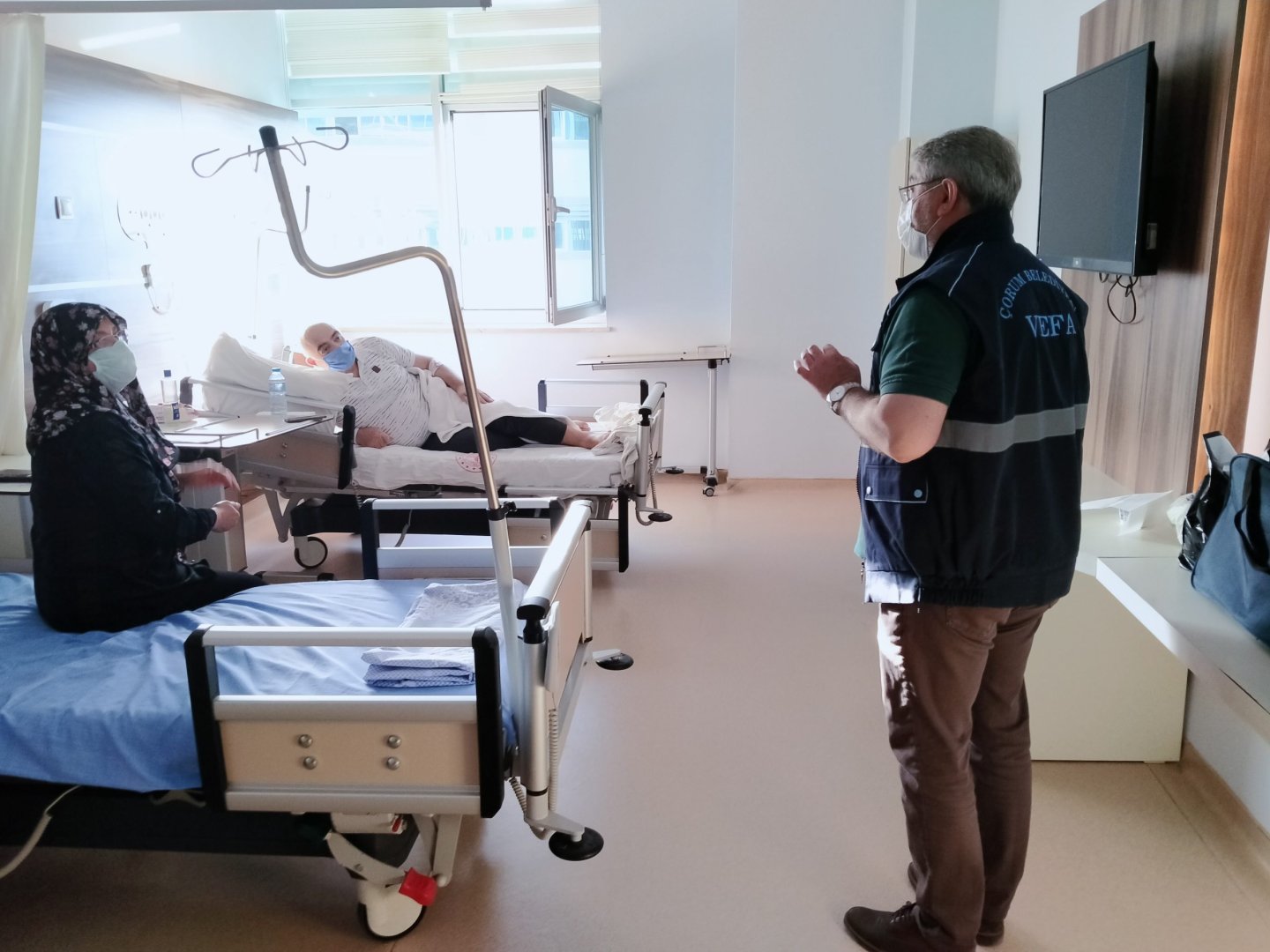 Kendilerine yönelik bayram ziyareti nedeniyle memnuniyetlerini dile getiren sağlık çalışanları, tedavi gören hastalar ve hasta yakınlarıyla bir süre sohbet eden Başkan Aşgın, “Koronavirüs tedbirleri kapsamında evlerinden uzak gece gündüz çalışan kahraman sağlık personelimizin bayramlarını tebrik ettik. Allah, gayretlerini artırsın. Hastalarımıza da acil şifalar diliyorum.” dedi.