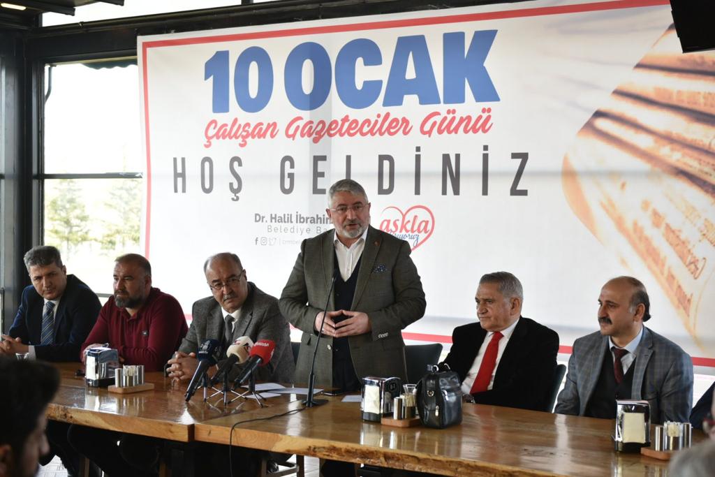 Belediye Başkanımız Dr. Halil İbrahim Aşgın yaptığı konuşmada basın mensuplarının 10 Ocak Çalışan Gazeteciler Günü’nü kutladı. Gazetecilerin önemli bir mesleği icra ettiklerini ifade eden Başkan Aşgın, “Çorum’da 21 internet sitesi, 3 yerel gazete ve 8 radyoda 100 civarında basın mensubu görev yapıyor. Halkımızın haber alma ve bilgilendirme hakkını sağladığınız için teşekkür ediyorum.” dedi.