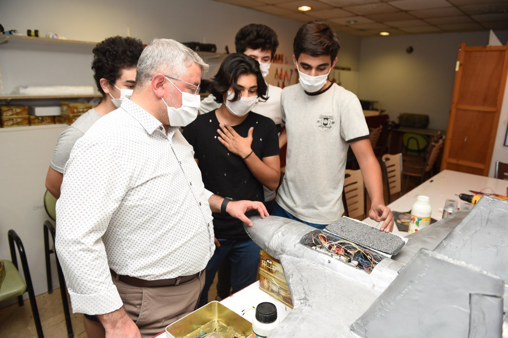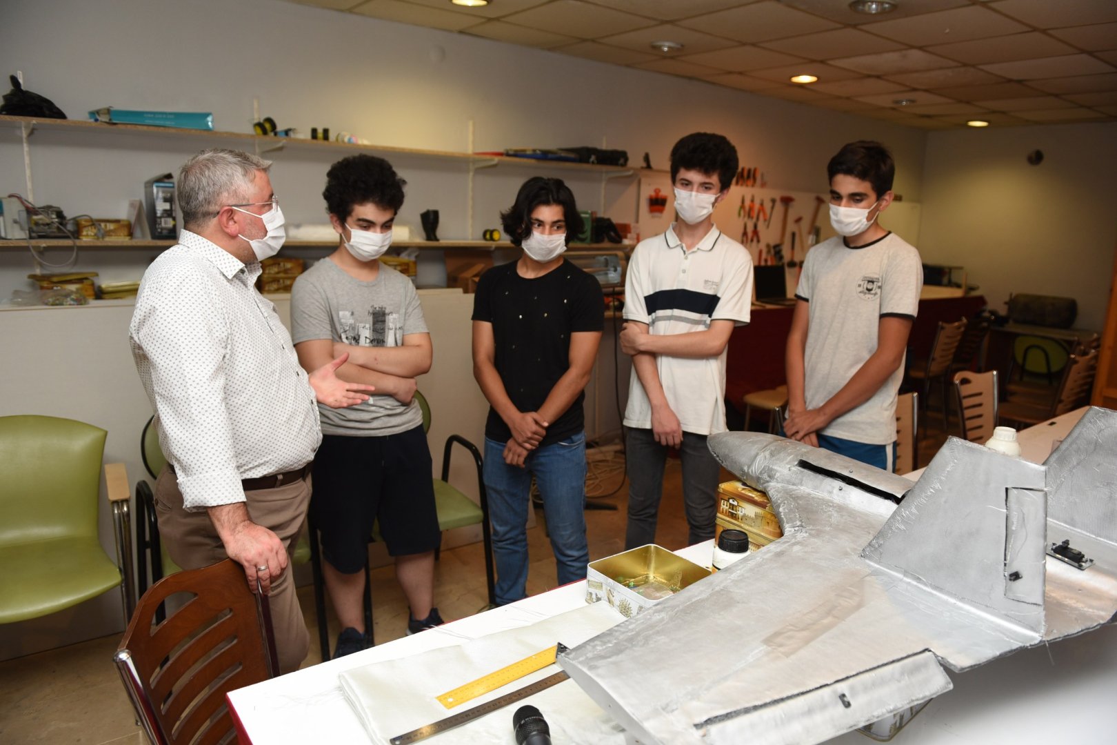 TÜBİTAK Liseler Arası İnsansız Hava Araçları Yarışmasına katılmak için model uçak tasarlayan Hayrettin Karaman İmam Hatip Lisesi öğrencilerine moral ziyaretinde bulunan Belediye Başkanımız Dr. Halil İbrahim Aşgın, genç mucitlere destek verdi.