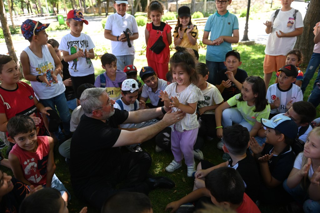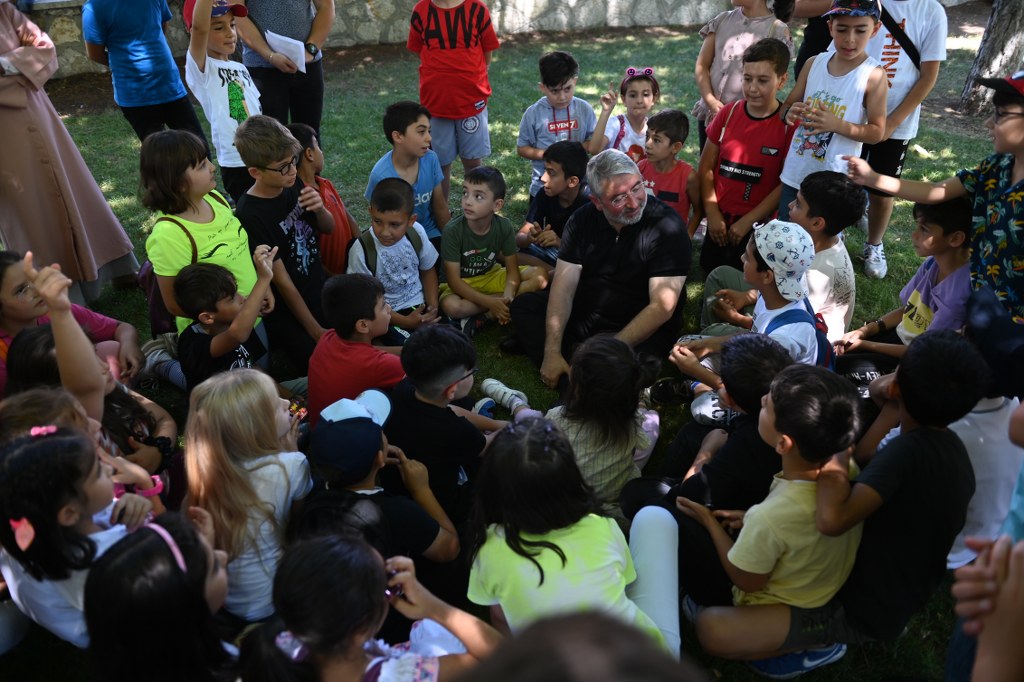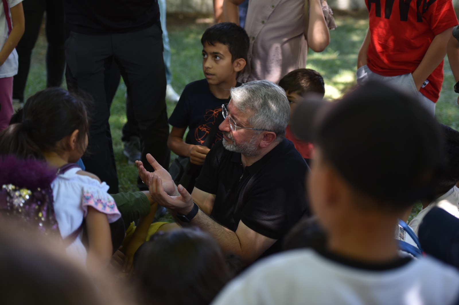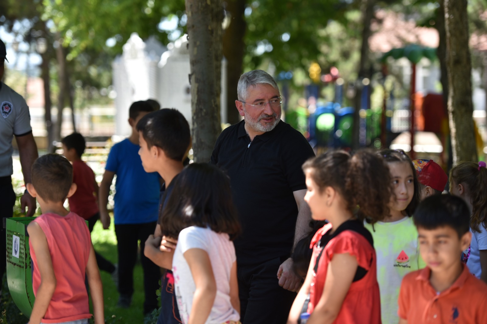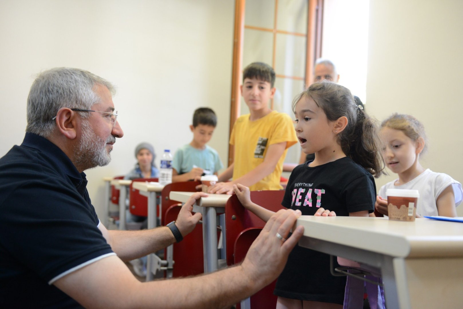 Başkan Aşgın’ın etrafı saran öğrenciler, sure ve dua okuyup, yaz kurslarında öğrendiklerini tekrarladı.  Miniklerle sıcak diyaloglar kuran Başkan Aşgın öğrencilerle sohbet edip, dondurma ikram etti.