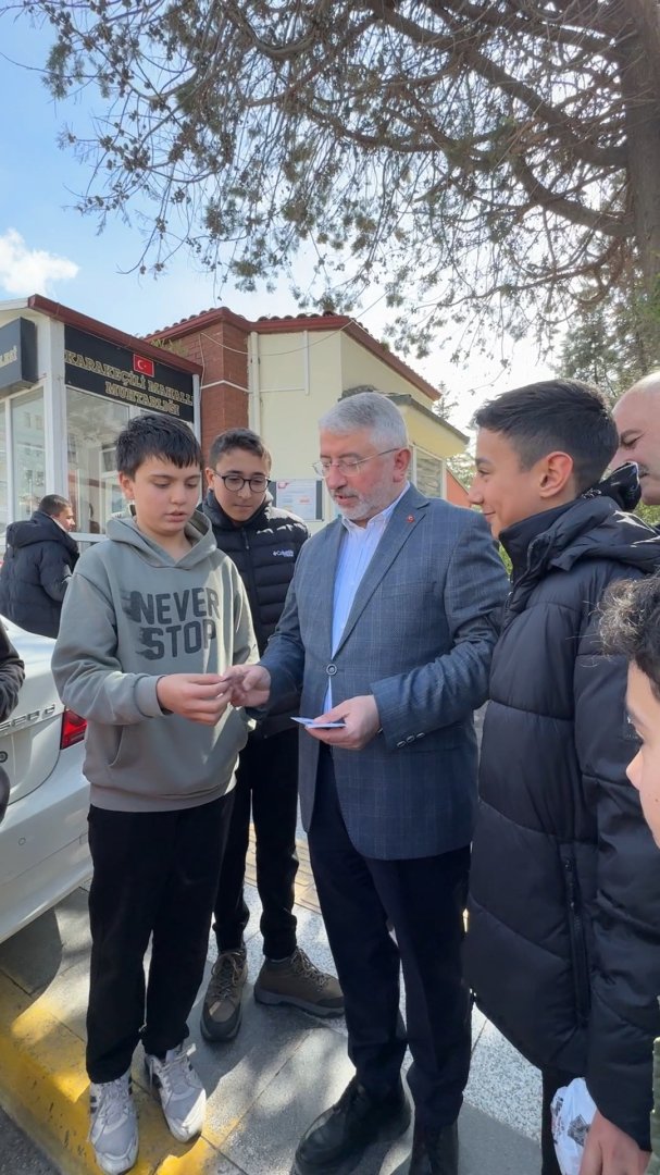 Belediye Başkanı Dr. Halil İbrahim Aşgın, Fatih Caddesi’nde esnaf ve vatandaşları ziyaret etti. Gezisi sırasında öğle molasına çıkan ortaokul öğrencileriyle karşılaşan Başkan Aşgın, gençlerin yakın ilgisiyle karşılaştı. Öğrencilerle sohbet eden Başkan Aşgın, 2 GB internet paketi hediye etti.  Sürpriz hediye karşısında oldukça sevinen öğrenciler, Başkan Aşgın’a teşekkür ederek seçimlerde başarılar diledi.