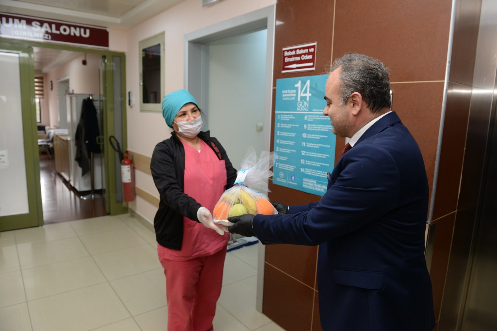 Başkan Aşgın’dan sağlık çalışanlarına meyve jesti