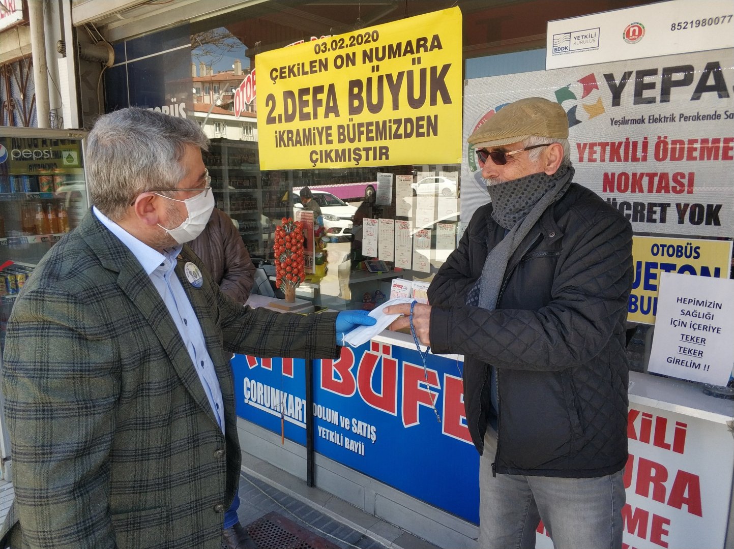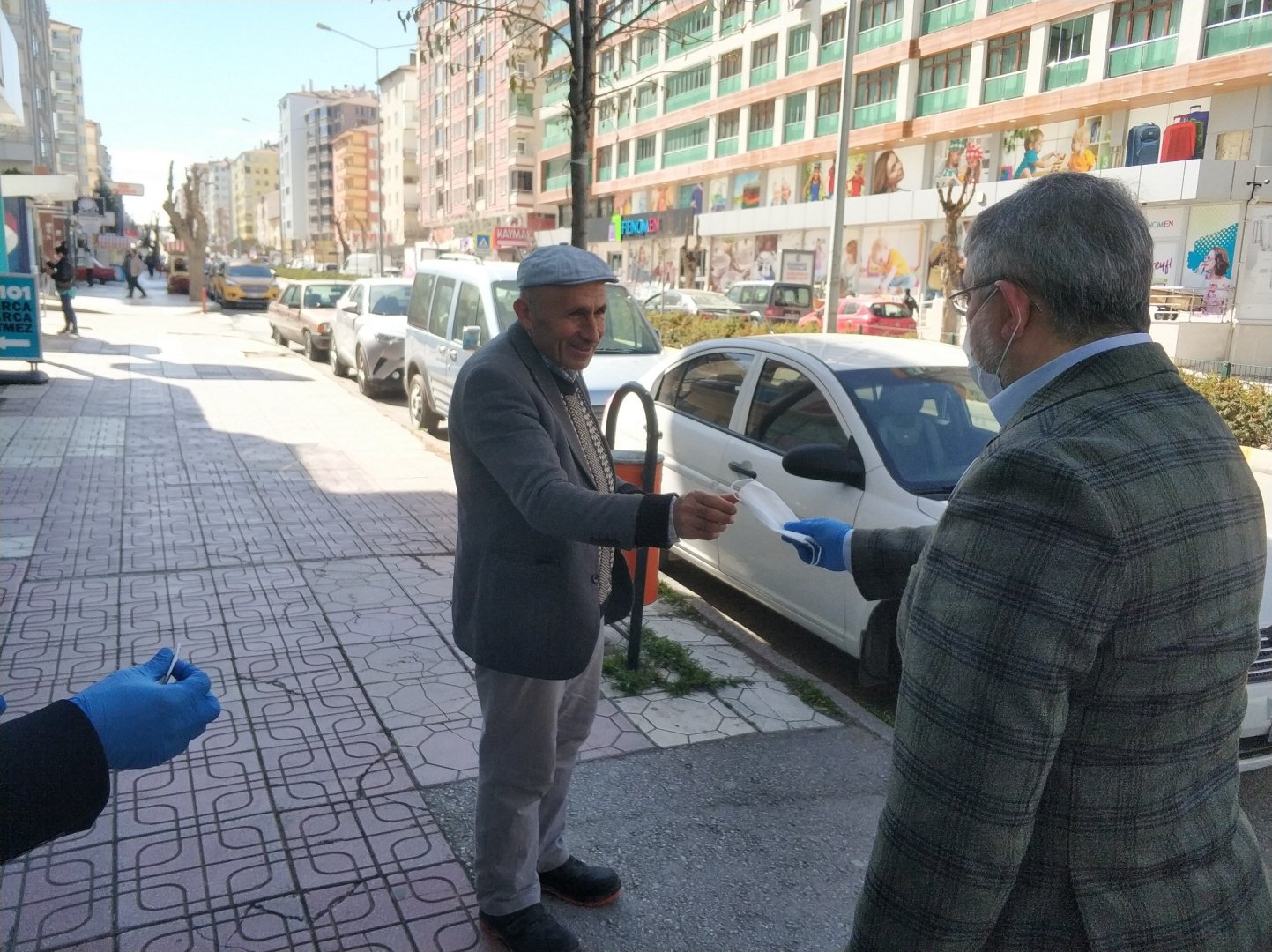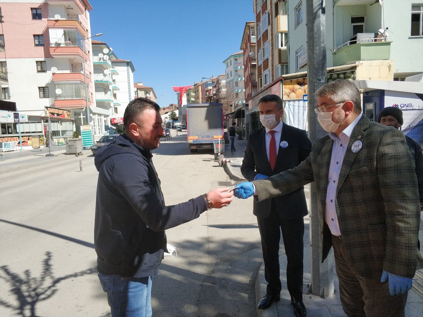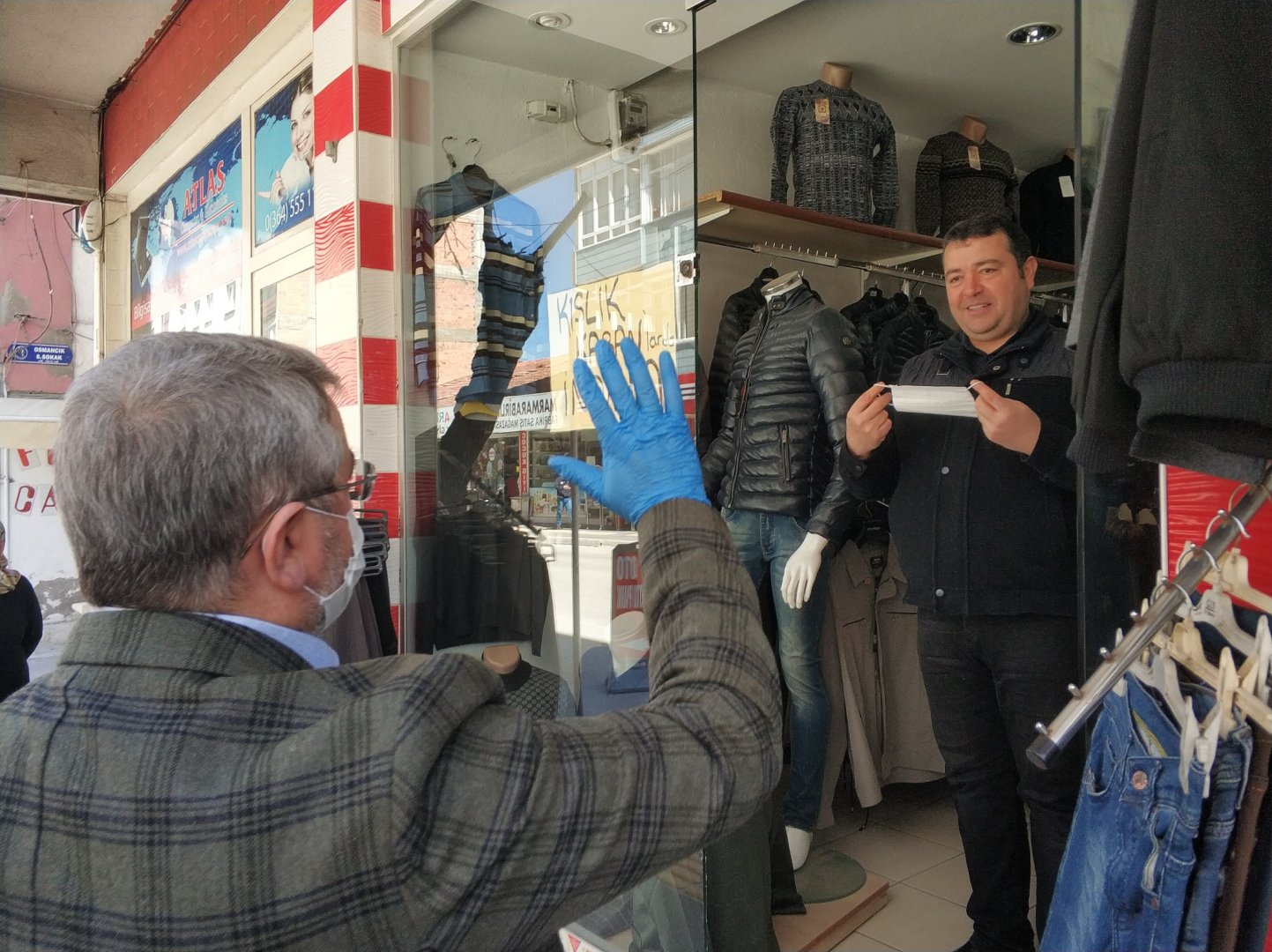 Koronavirüs tedbirleri kapsamında alınan kararlara uyan esnaf ve vatandaşlara teşekkür eden Başkan Aşgın, maske ve eldiven takmayanları uyardı ve vatandaşlara maske dağıttı.