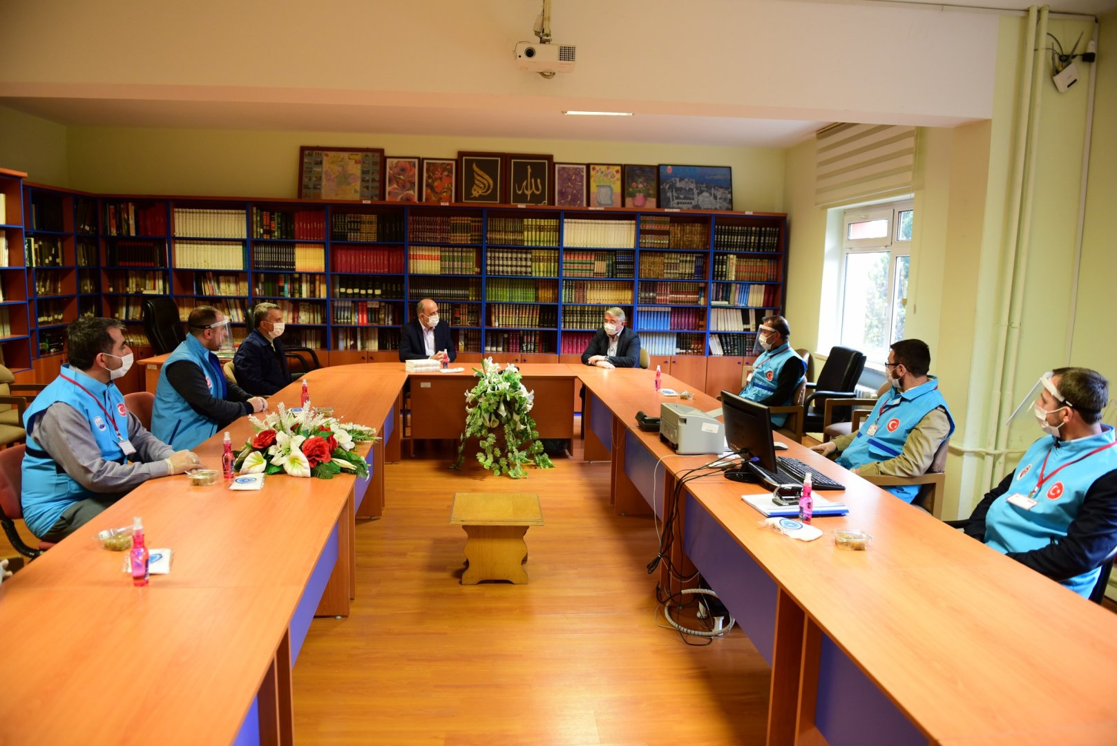 Belediye Başkanımız Dr. Halil İbrahim Aşgın, koronavirüs salgınıyla mücadele sürecinde büyük fedakârlık örneği sergileyen Vefa Gruplarına ziyaret etti. Başkan Aşgın, grup üyelerine tatlı ikramında bulundu.