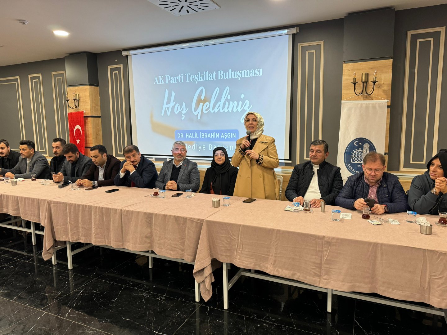 Çorum Belediyesi Mimar Sinan Düğün Salonu’nda gerçekleşen toplantıya, Belediye Başkanı Dr. Halil İbrahim Aşgın, AK Parti İl Başkanı Murat Günay, Merkez İlçe Başkanı Erhan Akar, Gençlik Kolları Başkanı Muhammed Fatih Temur, Kadın Kolları Başkanı Meryem Demir ve teşkilat yöneticileri katıldı.