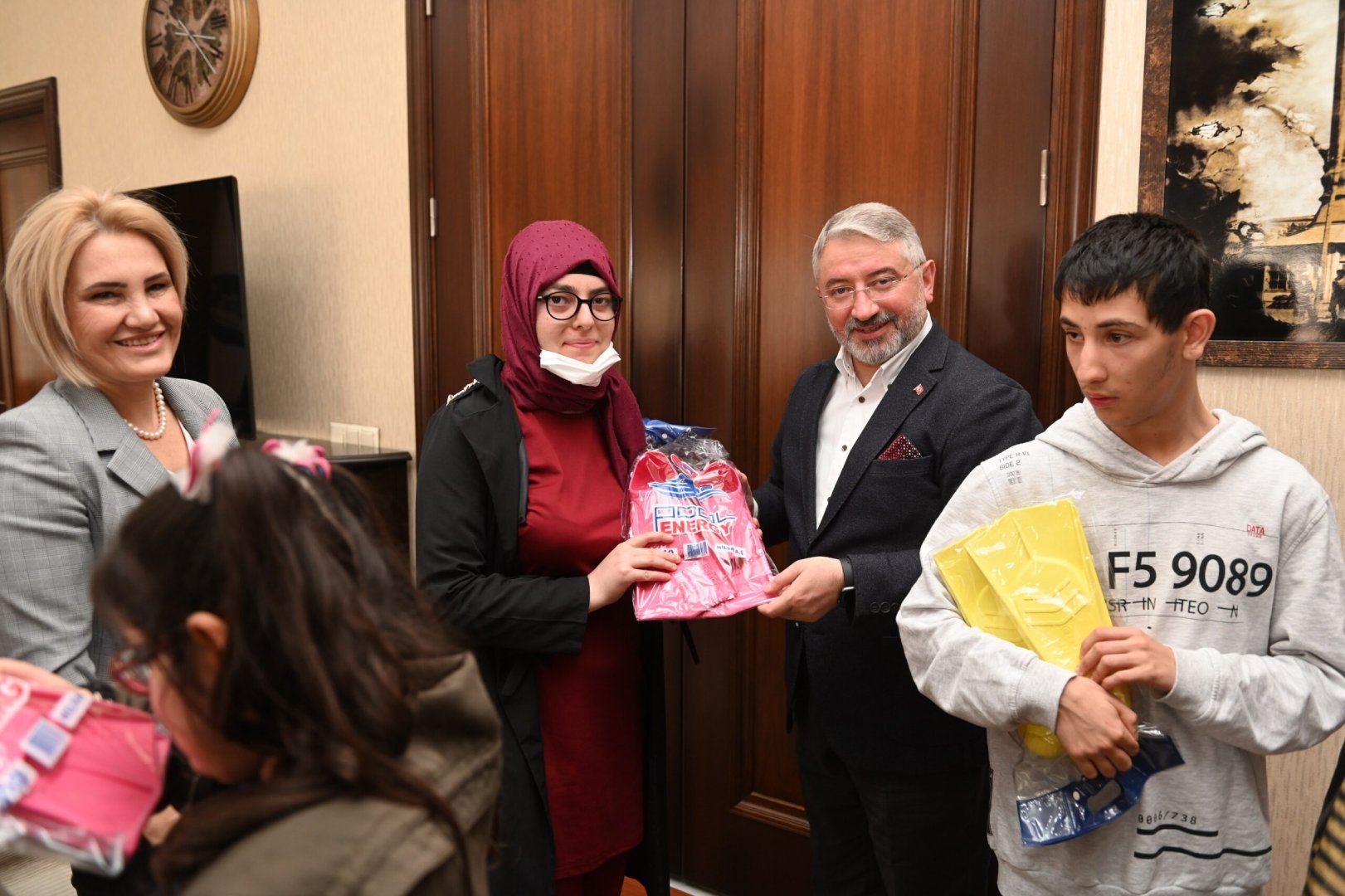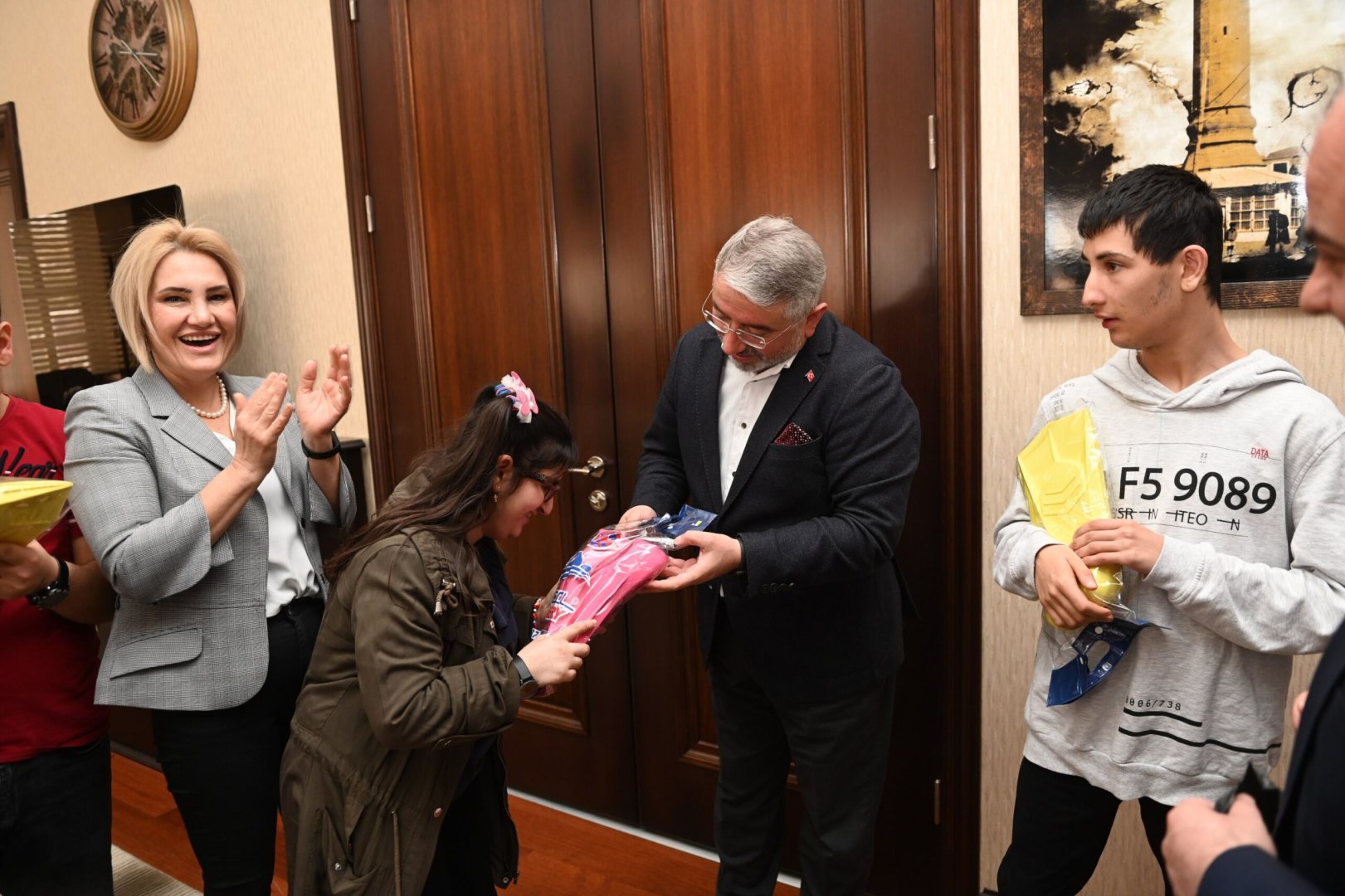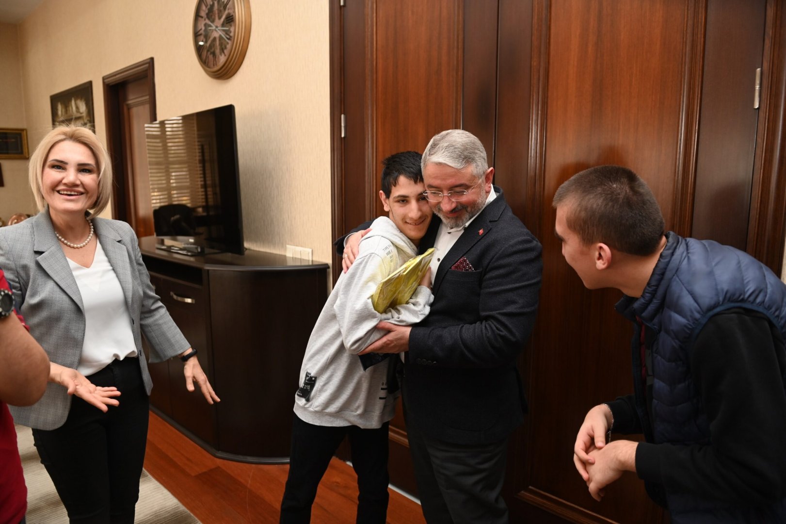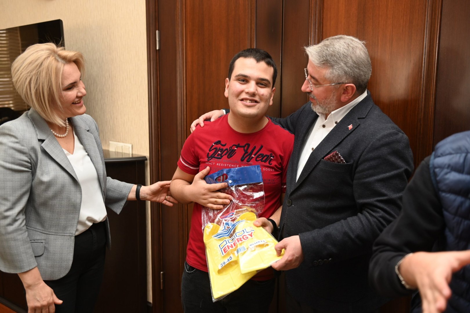 Engelli Eğitim ve Rehabilitasyon Merkezi bünyesinde engelli bireylere her türlü kişisel gelişim ve rehabilite eğitimi veren Çorum Belediyesi, Kent Konseyi Engelli Meclisi çatısı altında da engelli bireylerin ve ailelerinin hayatlarını kolaylaştırmaya devam ediyor. Engelli Meclisinin yüzme kursu talebine Buhara Kültür Merkezi bünyesinde özel seanslar açarak destek veren Belediye Başkanımız Dr. Halil İbrahim Aşgın, yüzme konusunda iddialı olan ve ciddi anlamda yol kat eden engelli öğrencilere yüzme paleti hediye etti. Başkan Aşgın, “Siz mutlu olunca biz de mutlu oluyoruz. Siz hep gülün diye elimizden ne geliyorsa yapıyoruz ve yapmaya devam edeceğiz” dedi.