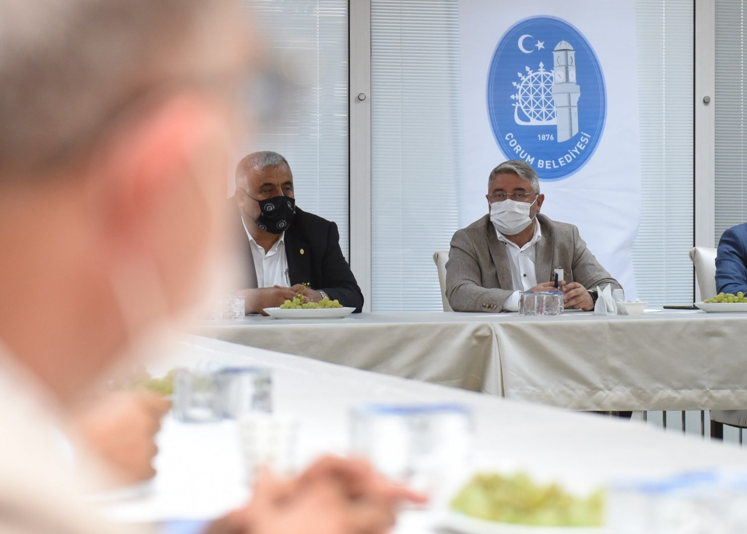 Belediyemizin Park ve Bahçeler Müdürlüğü’nde gerçekleştirilen toplantıya ÇESOB Başkanı Recep Gür’ün yanı sıra Bakkallar, Hazır Elbiseciler, Kahveciler, Çilingirler, Ayakkabıcılar, Lokantacılar, Sebzeciler, Oto Tamirciler, Fırıncılar, Marangozlar, Taksiciler ve Minibüsçüler ile Elektrikçiler Odası Başkanları da katıldı.