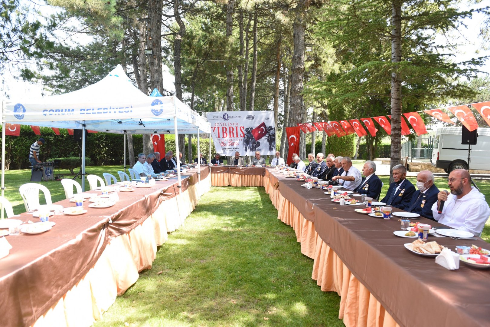 Belediyemiz gaziler onuruna Park ve Bahçeler Müdürlüğü bahçesinde yemek düzenledi. Başkan Aşgın’ın yanı sıra yemeğe Çorum Şehit Aileleri ve Vazife Malulleri Derneği Başkanı Galip Deniz, Çorum Muharip Gaziler Derneği Başkanı Muharrem Gül ve Kıbrıs Barış Harekâtı Gazileri katıldı. Yemek başlamadan önce Kuran-ı Kerim Tilaveti yapıldı.