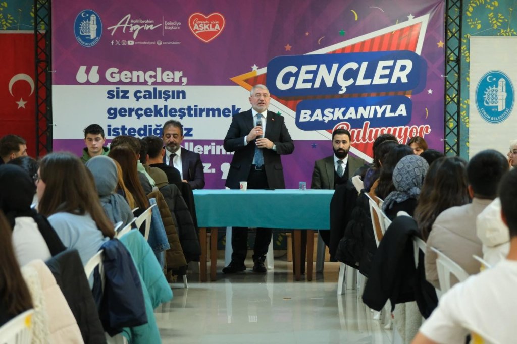Belediye Başkanı Dr. Halil İbrahim Aşgın “Gençler Başkanıyla Buluşuyor” projesi kapsamında Çorum Belediyesi Gençlik Merkezi’nde eğitim alan öğrenciler ve öğretmenlerle bir araya geldi.