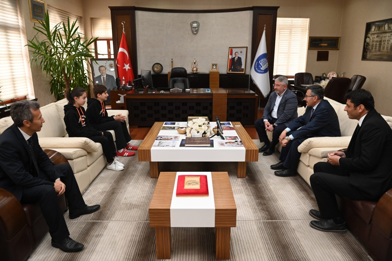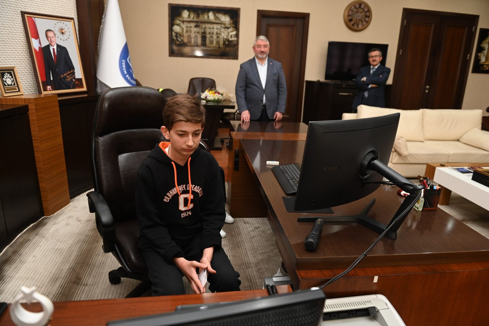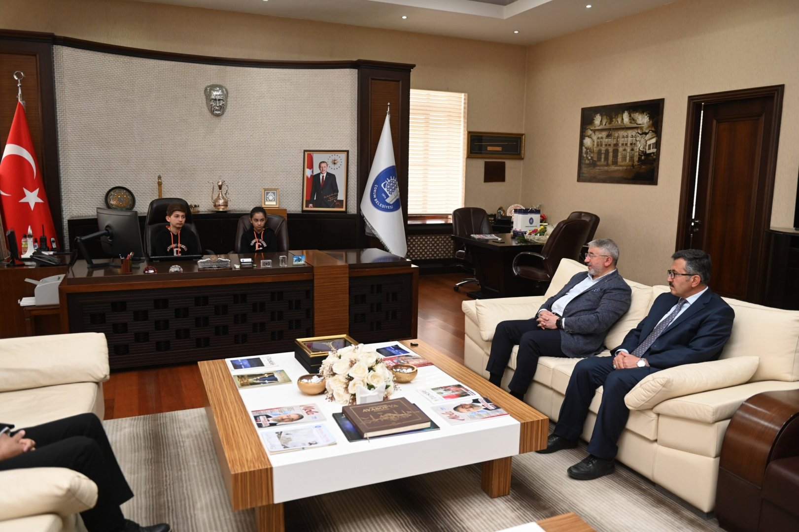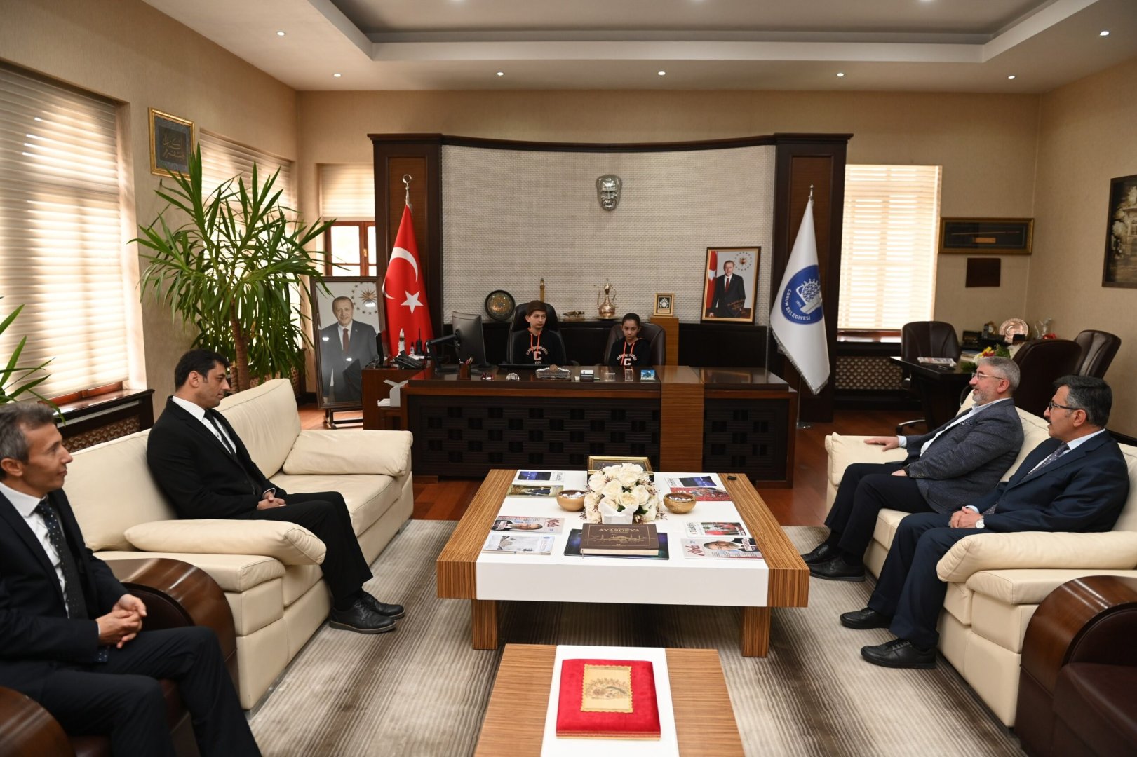 23 Nisan Milli Egemenlik ve Çocuk Bayramı’nda gelenek değişmedi. Bayramlarını kutlamaya hazırlanan çocuklar Belediye Başkanımız Dr. Halil İbrahim Aşgın’ın makam koltuğuna oturdu. Cumhuriyet Ortaokulu öğrencileri Eymen Yazıcı ve Buğlem Şahin belediye başkan yardımcıları ile birim müdürlerini arayarak talimatlarını ilettiler.