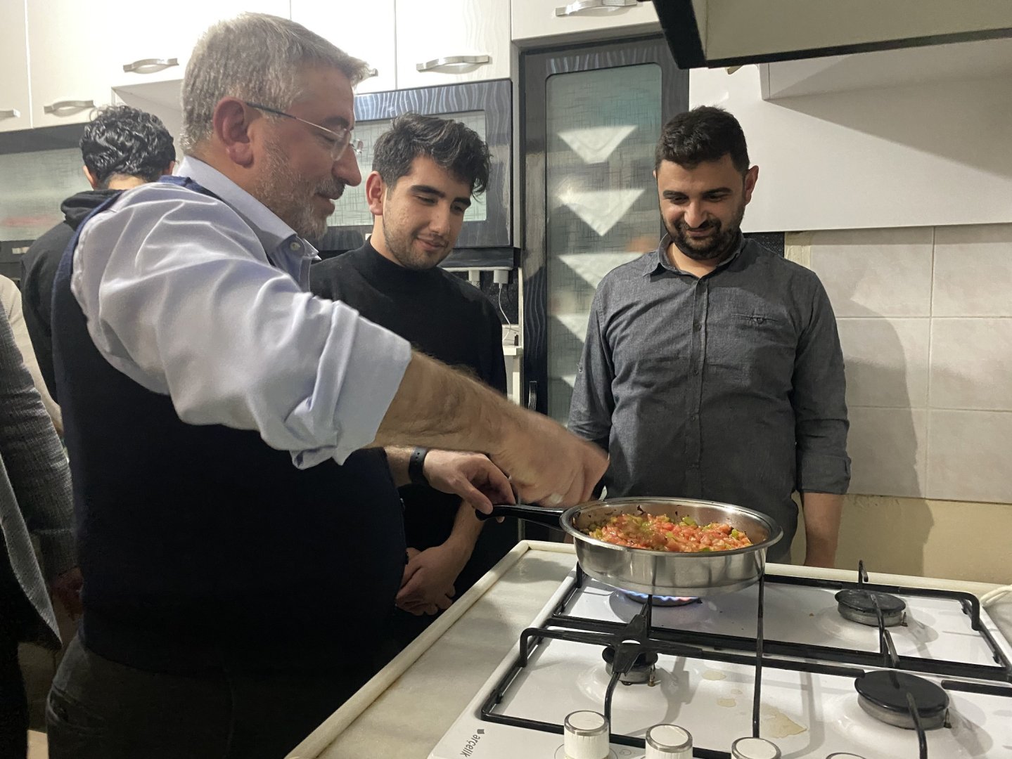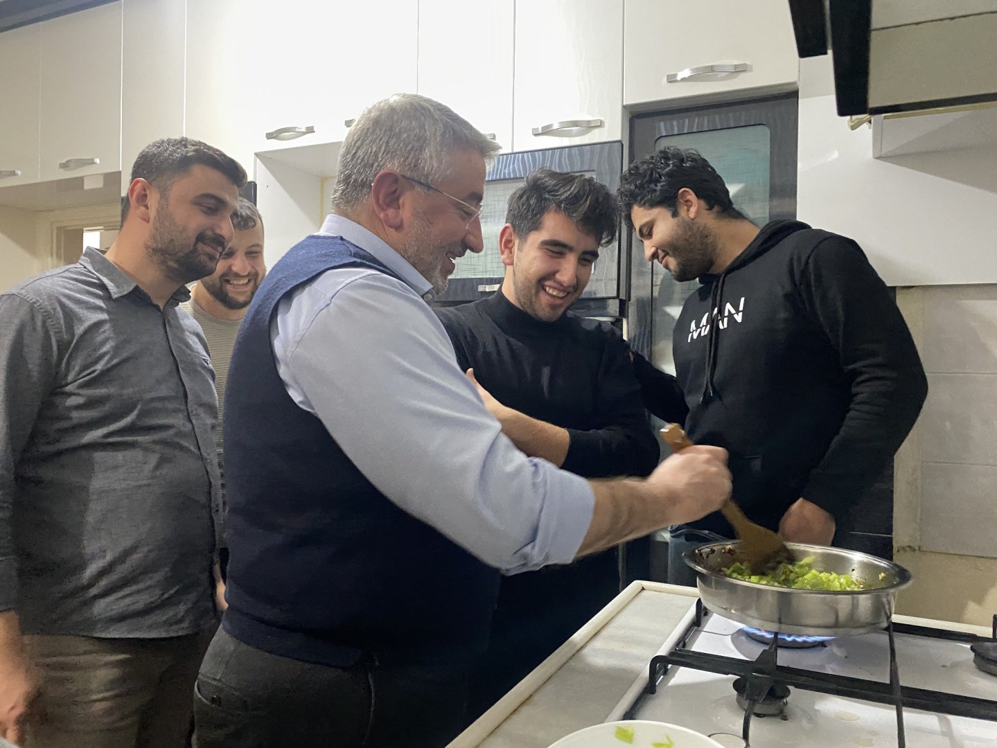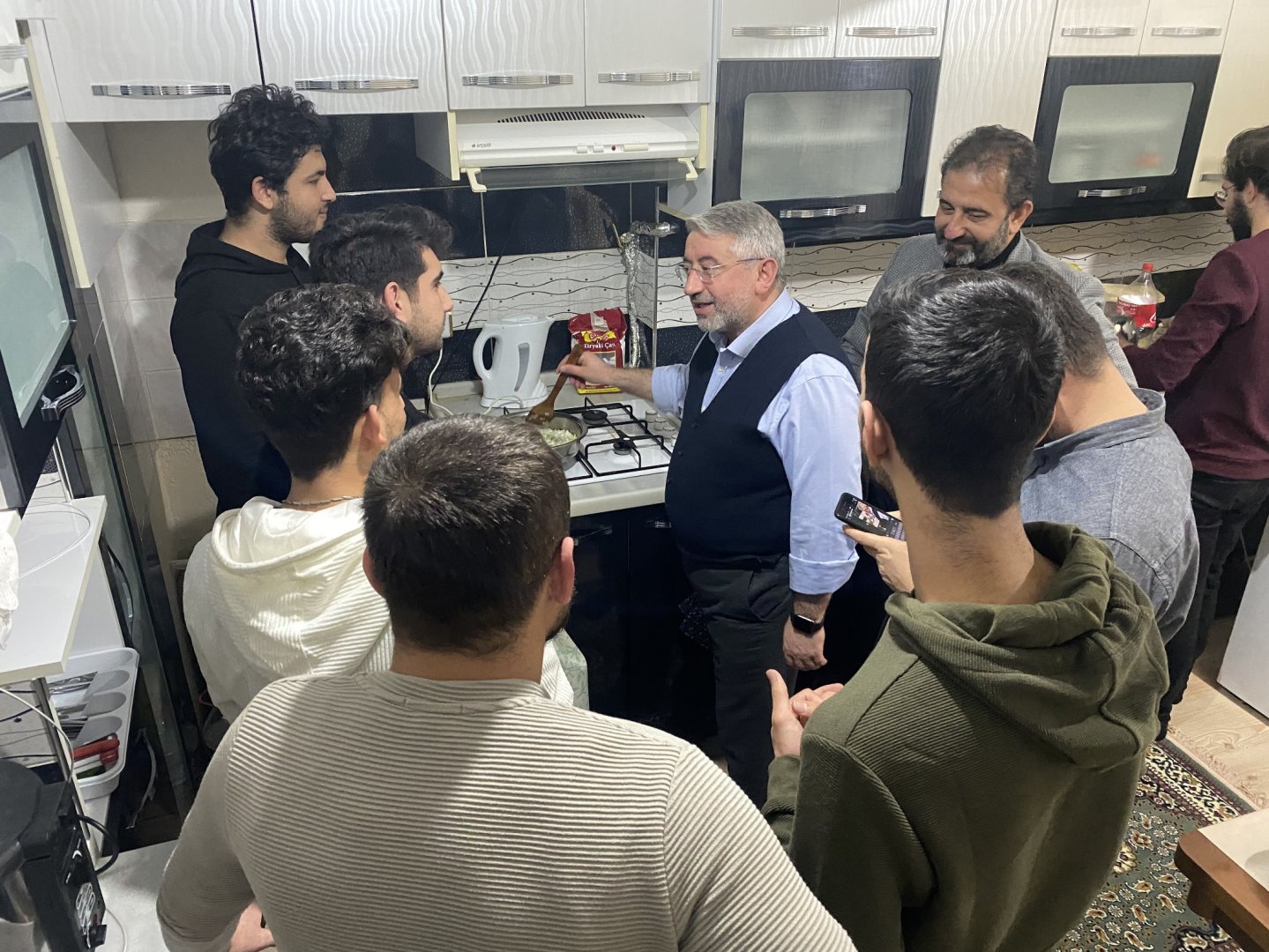 Üniversiteli öğrencilerin sosyal medyadan yaptığı daveti kırmayıp öğrencileri çat kapı ziyaret eden Belediye Başkanımız Dr. Halil İbrahim Aşgın’na Belediye Başkan Yardımcımız İsmail Yağbat ve AK Parti Gençlik Kolları Başkanı Muhammed Fatih Temur da eşlik etti. Öğrencilerin büyük bir mutluluk ve memnuniyetle karşıladığı ziyarette kolları sıvayan Başkan Aşgın, menemen konusundaki maharetini gösterdi. Menemeni afiyetle yiyen öğrencilerle, öğrencilik anılarını paylaşan Başkan Aşgın, öğrencilerle onlara hayata dair tavsiyelerde de bulundu. Başkan Aşgın, gençlere yönelik yaptıkları çalışmalarla ilgili de bilgiler verdi.