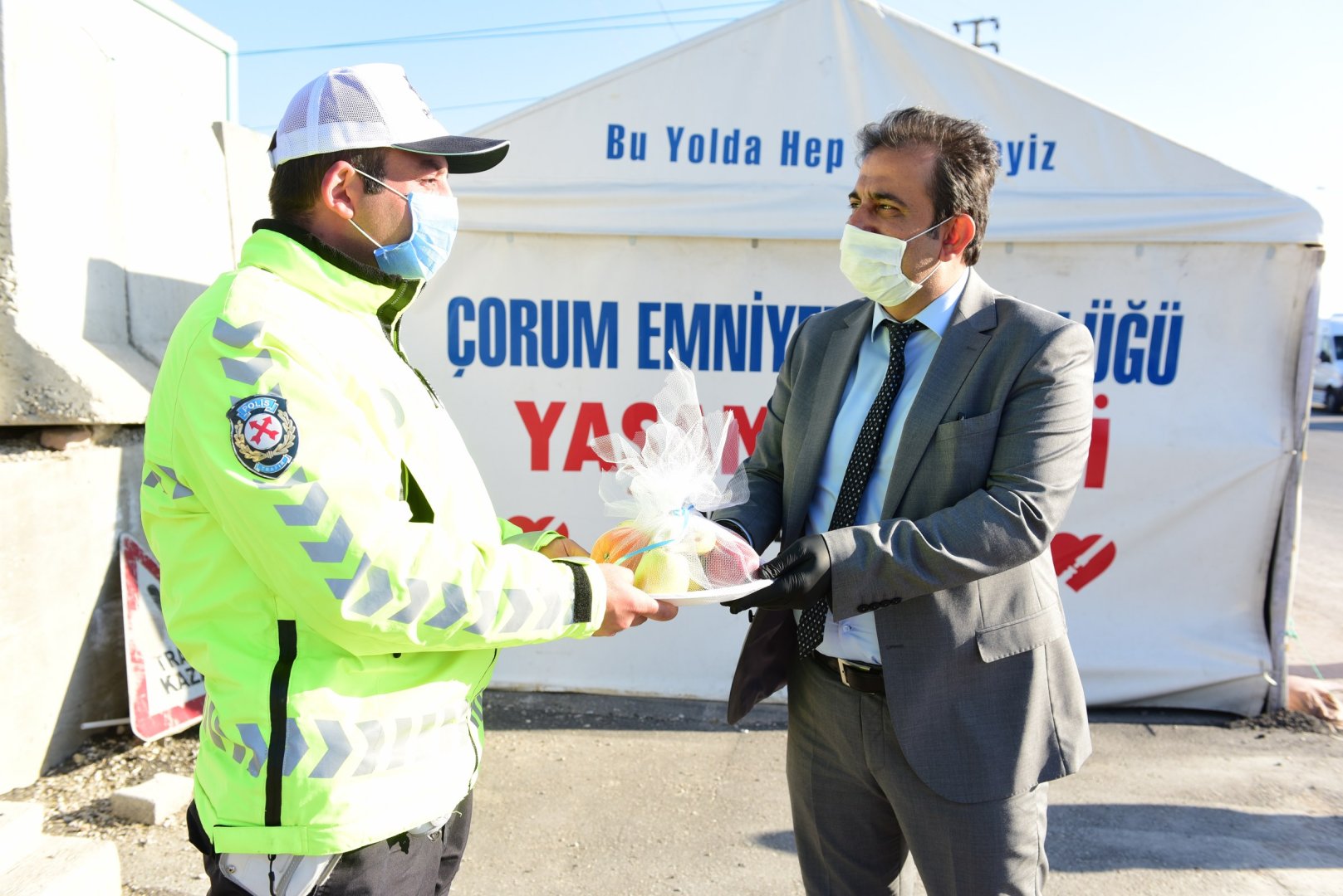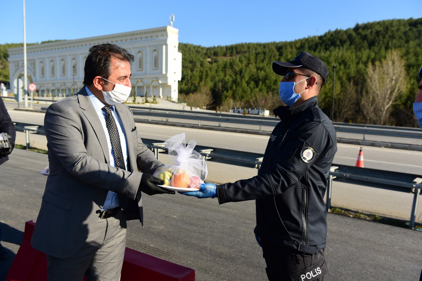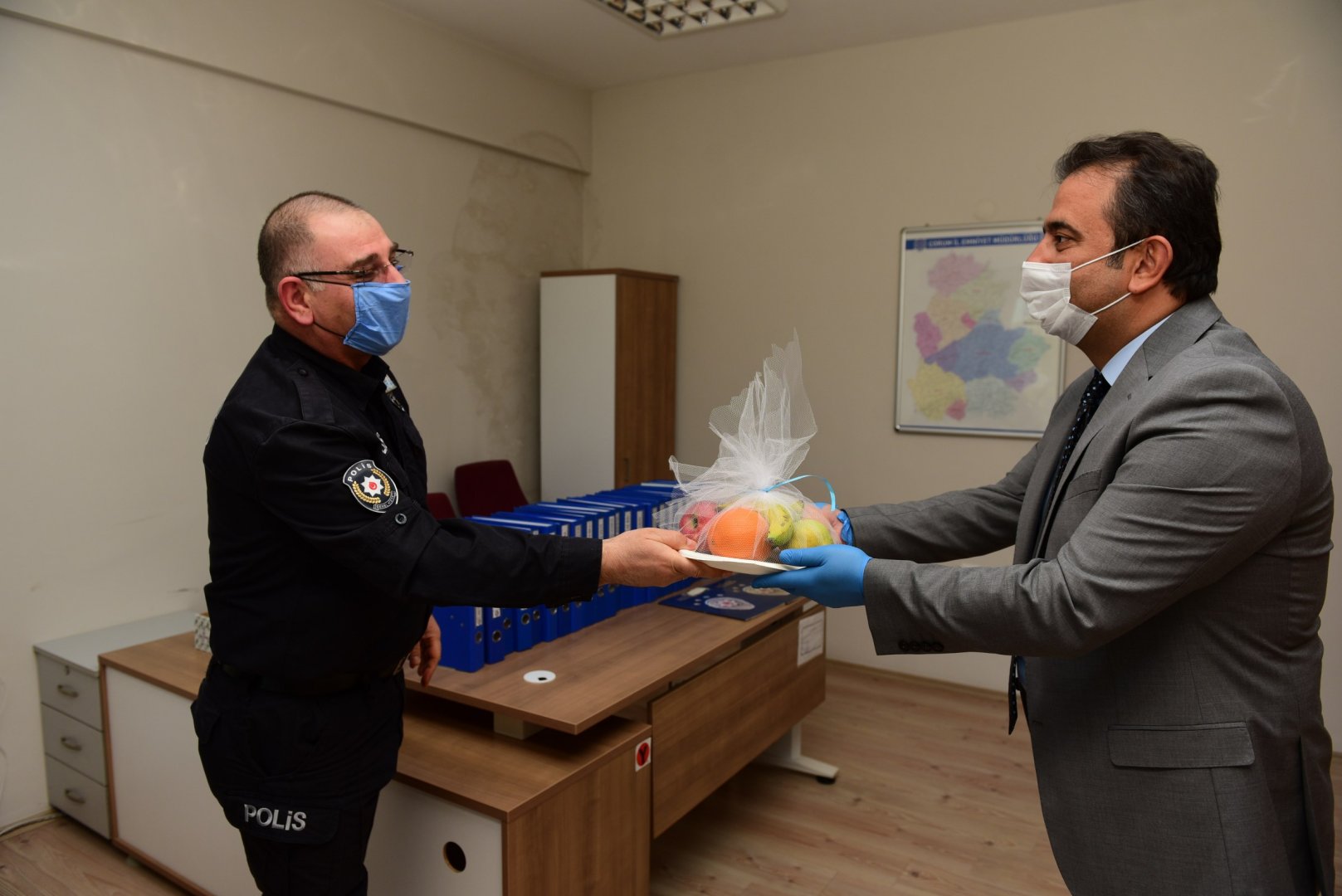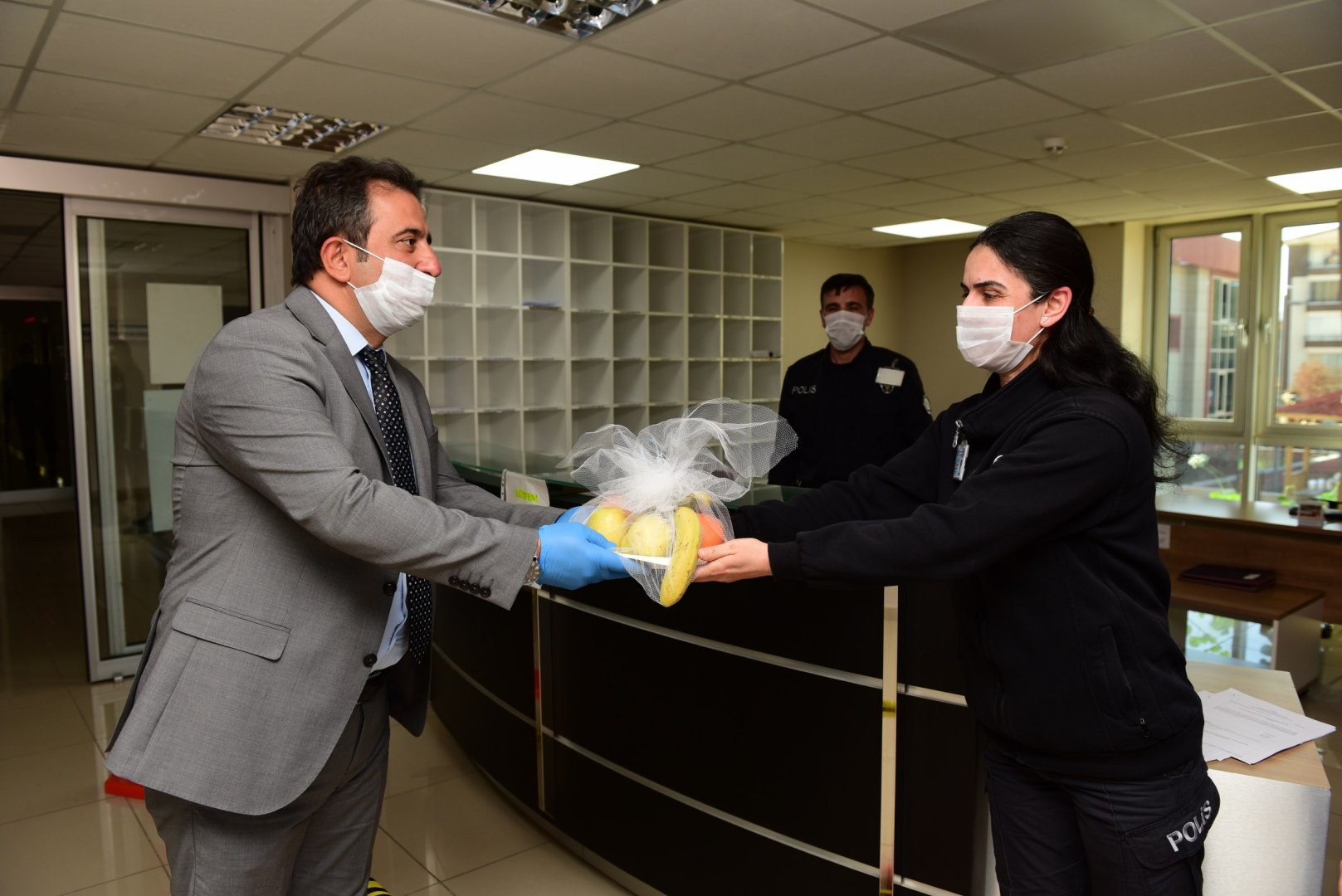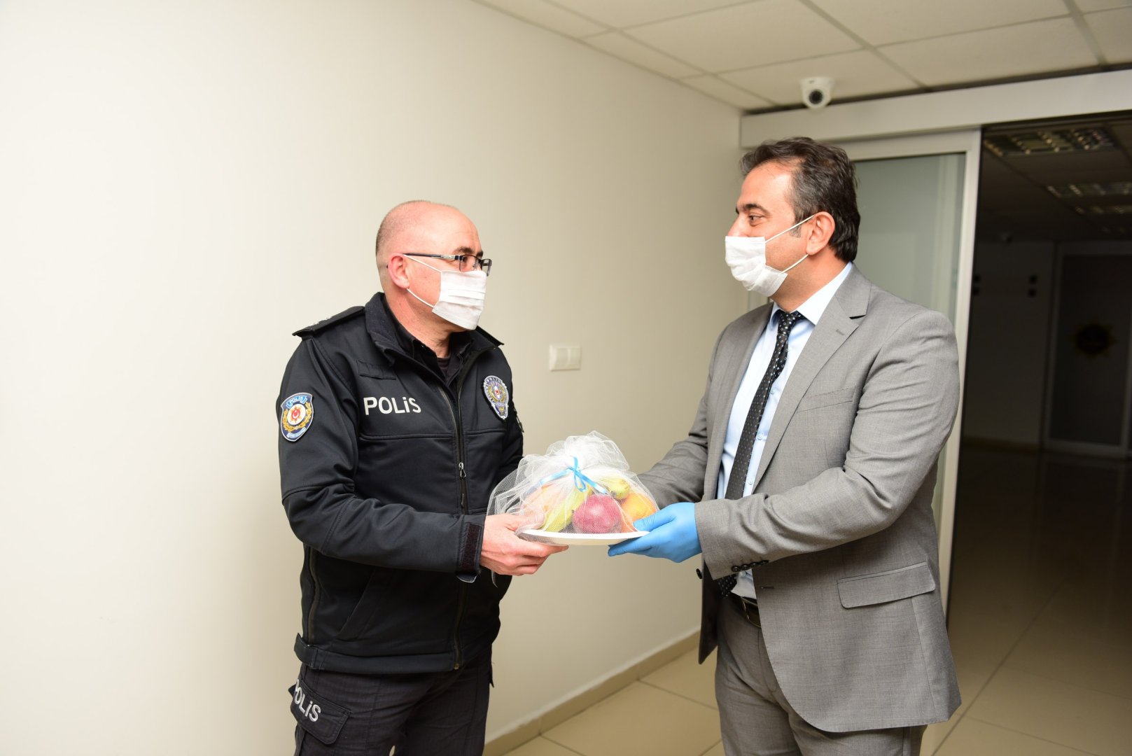 Belediye Başkanımız Dr. Halil İbrahim Aşgın, Polis Teşkilatının 175. yılı vesilesiyle İl Emniyet Müdürlüğünü ziyaretinde İl Emniyet Müdürü Mehmet Gülser’e meyve ikramında bulundu. Belediye Başkan Yardımcımız İsmail Yağbat da görev başında olan Emniyet personeline ve polis kontrol noktalarında görev yapan polisleri ziyaret ederek Belediye Başkanımız Dr. Halil İbrahim Aşgın’ın selamını iletti ve meyve ikramında bulundu.