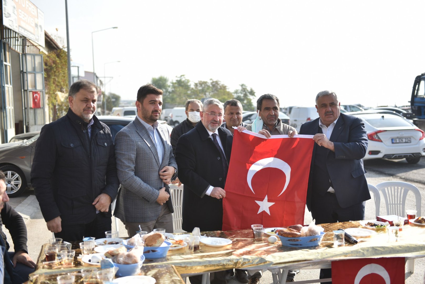 Sanayi sitesine olan yatırımların ve çalışmaların devam ettiğini belirten Belediye Başkanımız Dr. Halil İbrahim Aşgın, “Geçtiğimiz 2.5 yıl içerisinde bütün esnafımızla şehri beraber yönetiyoruz. Taahhüt ettiğimiz projelerin yüzde 70’ini tamamlamanın gururunu yaşıyoruz. Esnaf kültürümüzden gelen bir de kapalı çarşı yapalım, tarihi bir bedesten yapalım dedik ve şu anda 32 Milyon TL’lik bir projeyi de hayata geçiriyoruz. Yeni bağlantı yolu açacağız dedik, projemizde 1 taneydi 3 tane açtık. Sanayi Sitesi’nde çıkabilecek bir yangına daha hızlı müdahale edebilmek için otobüs terminalin içerisine yeni bir itfaiye müfrezesi kurduk” dedi.