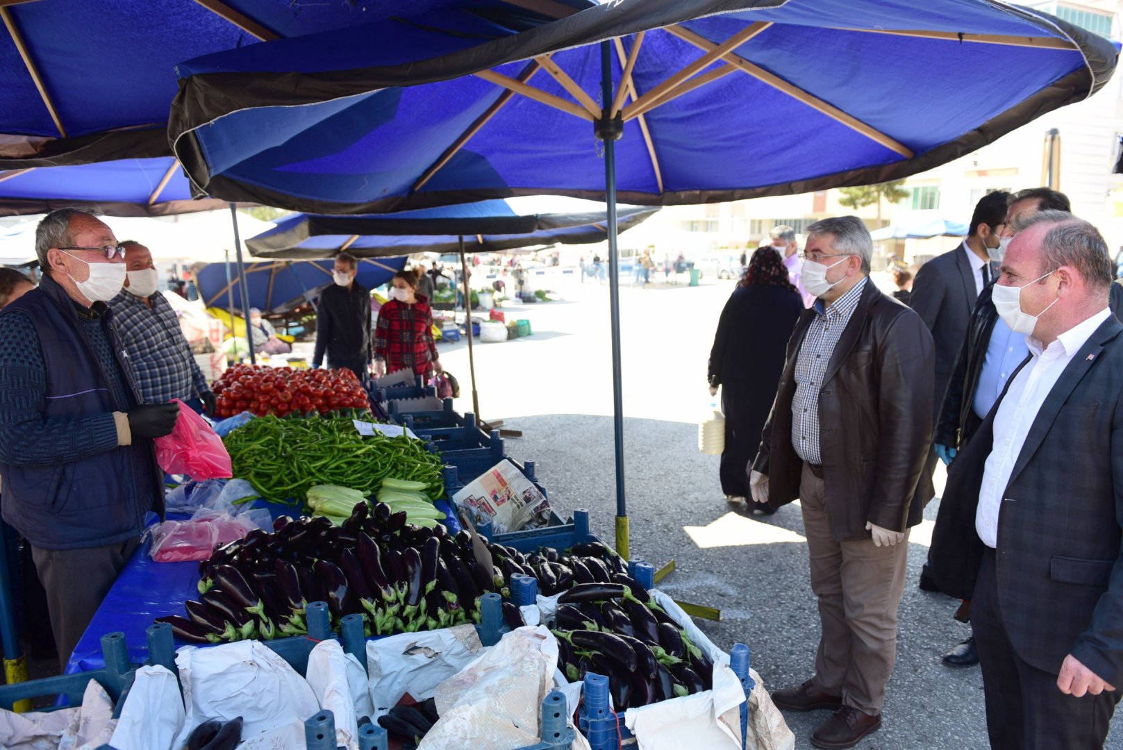 Pazar yerlerinde esnafın ve vatandaşların Sağlık Bakanlığı ve İl Hıfzıssıhha Kurulu kararlarınca belirlenen kurallarına uyması gerektiğini ifade eden Başkan Aşgın, pazarcı esnafı ve vatandaşların bu kurallara uymasının önemine vurgu yaptı. Başkan Aşgın, “Esnafımız ve hemşehrilerimiz kurallara uymazlarsa alınan tedbirler, harcanan çaba tamamen boşa gider. Hükumetimiz ulusal bazda önlemler alıyor, yerel yönetimler olarak bizler de önlemlerimizi alıyoruz. Kurallara uyulması bu tedbirlerin salgını önlemedeki başarıyı artıracaktır. İl Emniyet Müdürlüğümüzle birlikte İl Hıfzıssıhha Kurulu kararlarının uygulanması için her türlü çalışmayı yapıyoruz. ” dedi.