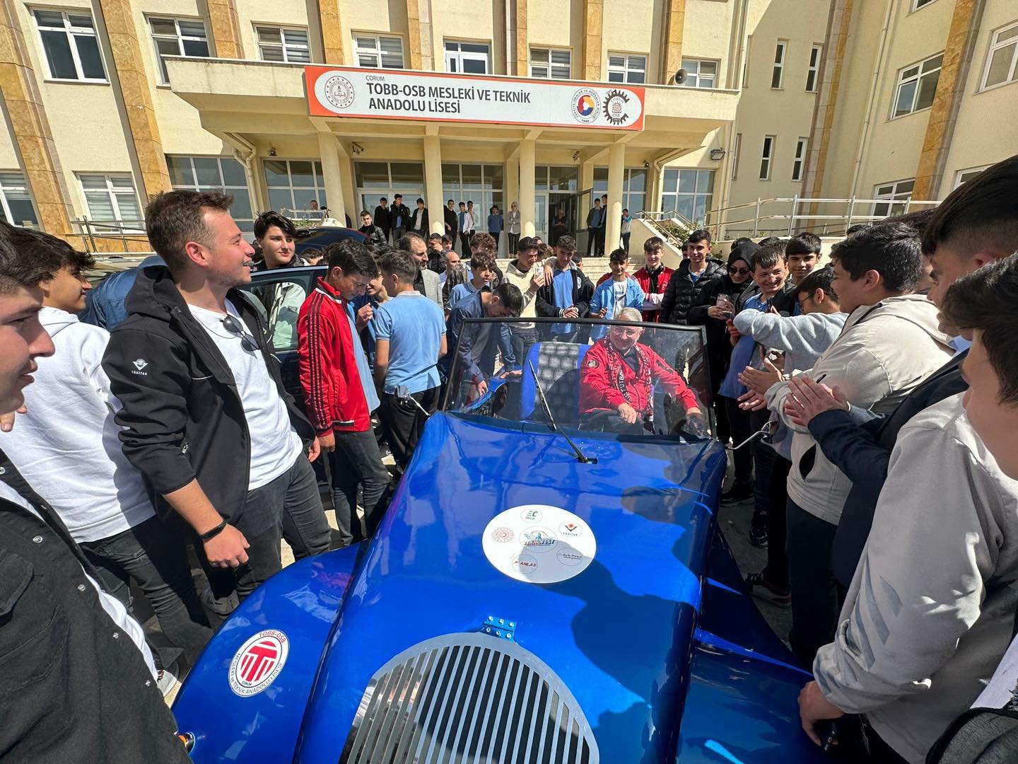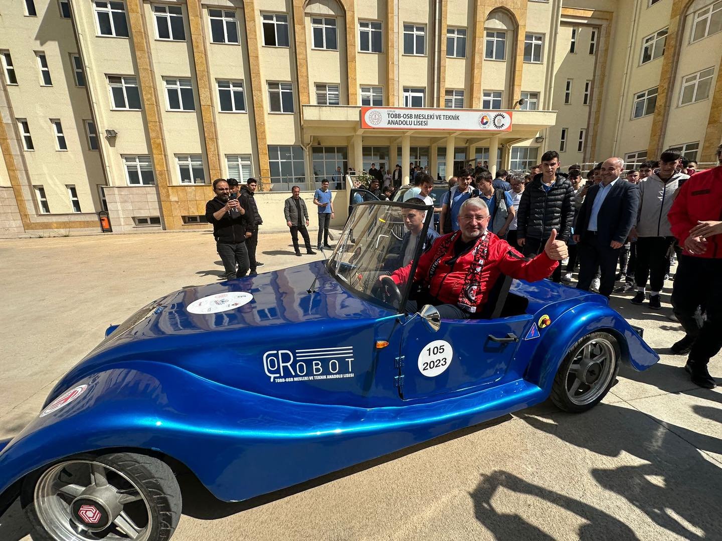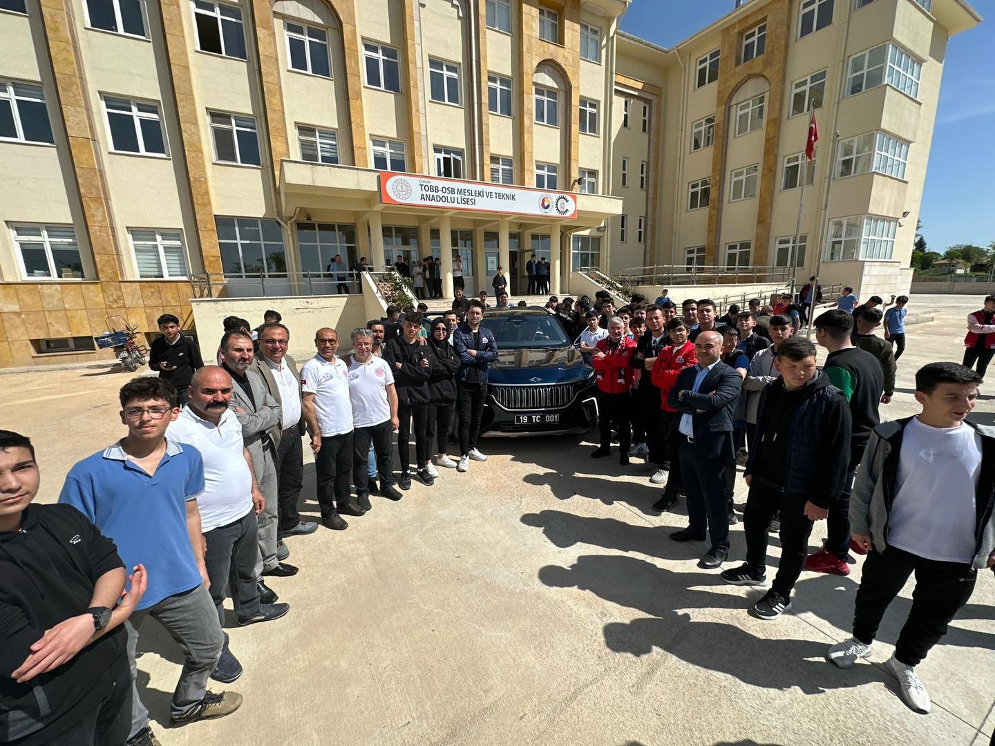 Başkan Aşgın ilk ziyaretini TOBB-OSB Mesleki ve Teknik Anadolu Lisesi’ne yaptı. Ziyaret sırasında yerli otomobil TOGG ile ÇOROBOT takımının yaptığı ve TEKNOFEST 2023’te 500 takım arasından 8’inci olan ÇOGG isimli otomobil okul bahçesinde yan yana sergilendi.