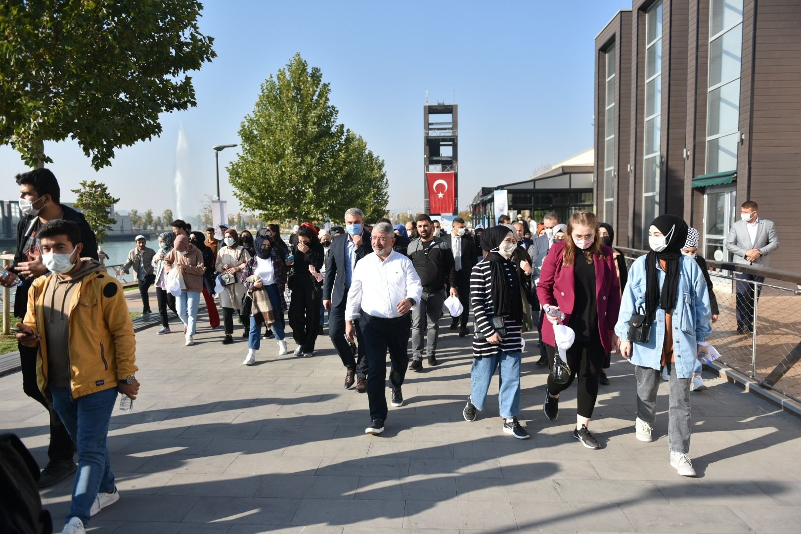 Belediye Başkanı Dr. Halil İbrahim Aşgın, üniversite öğrencilerini çok özlediklerinin altını çizerek “Ağaçların dibinde gençlerle sohbet etmeyi inanın çok özlemiştim, şükürler olsun.” diye konuştu.