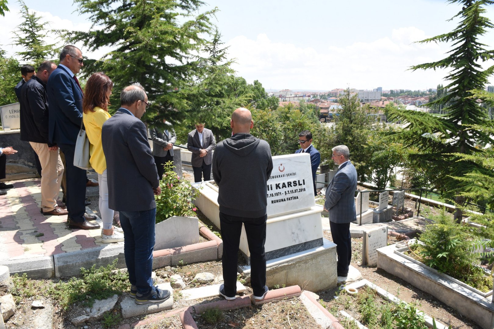15 Temmuz 2016’da FETÖ terör örgütü tarafından gerçekleştirilmeye çalışan darbe girişimini engellemek için sokağa çıkan ve Kızılay’da hain darbeciler tarafından vurulan Mustafa Avcu ve TÜRKSAT Gölbaşı yerleşkesinde şehit olan Ali Karslı Belediye Başkanımız Dr.Halil İbrahim Aşgın ve Belediye Meclis Üyeleri tarafından kabirleri başında anıldı.