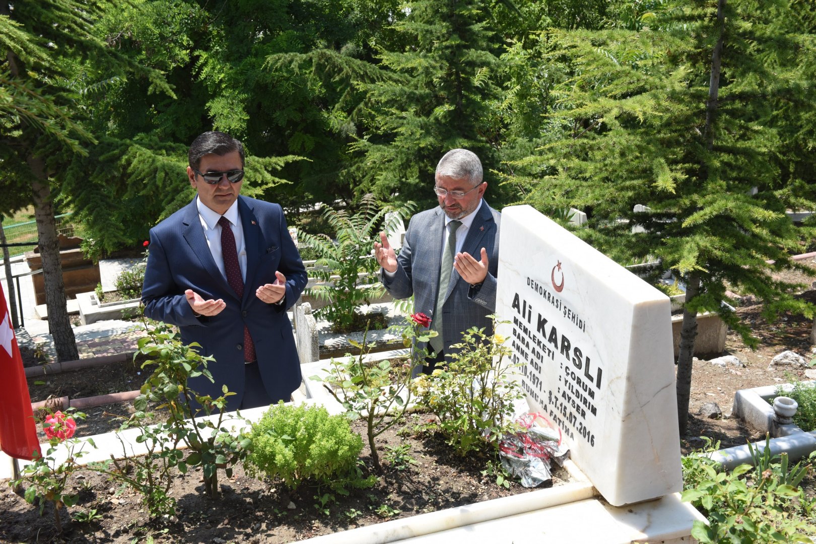 Belediye Başkanımız Dr. Halil İbrahim Aşgın ve Belediye Meclis Üyeleri 15 Temmuz da vatanın bütünlüğünün bozulmaması adına şehit olan Çorumlu şehitler Mustafa Avcu ve Ali Karslı’yı unutmadı.