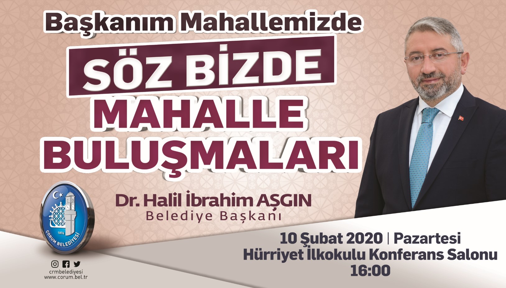 “Başkanım Mahallemizde Söz Bizde” sloganıyla düzenlenen mahalle buluşmalarının 6’ncısı 10 Şubat Pazartesi günü saat 16.00’da Hürriyet İlkokulu Konferans Salonunda gerçekleştirilecek.
