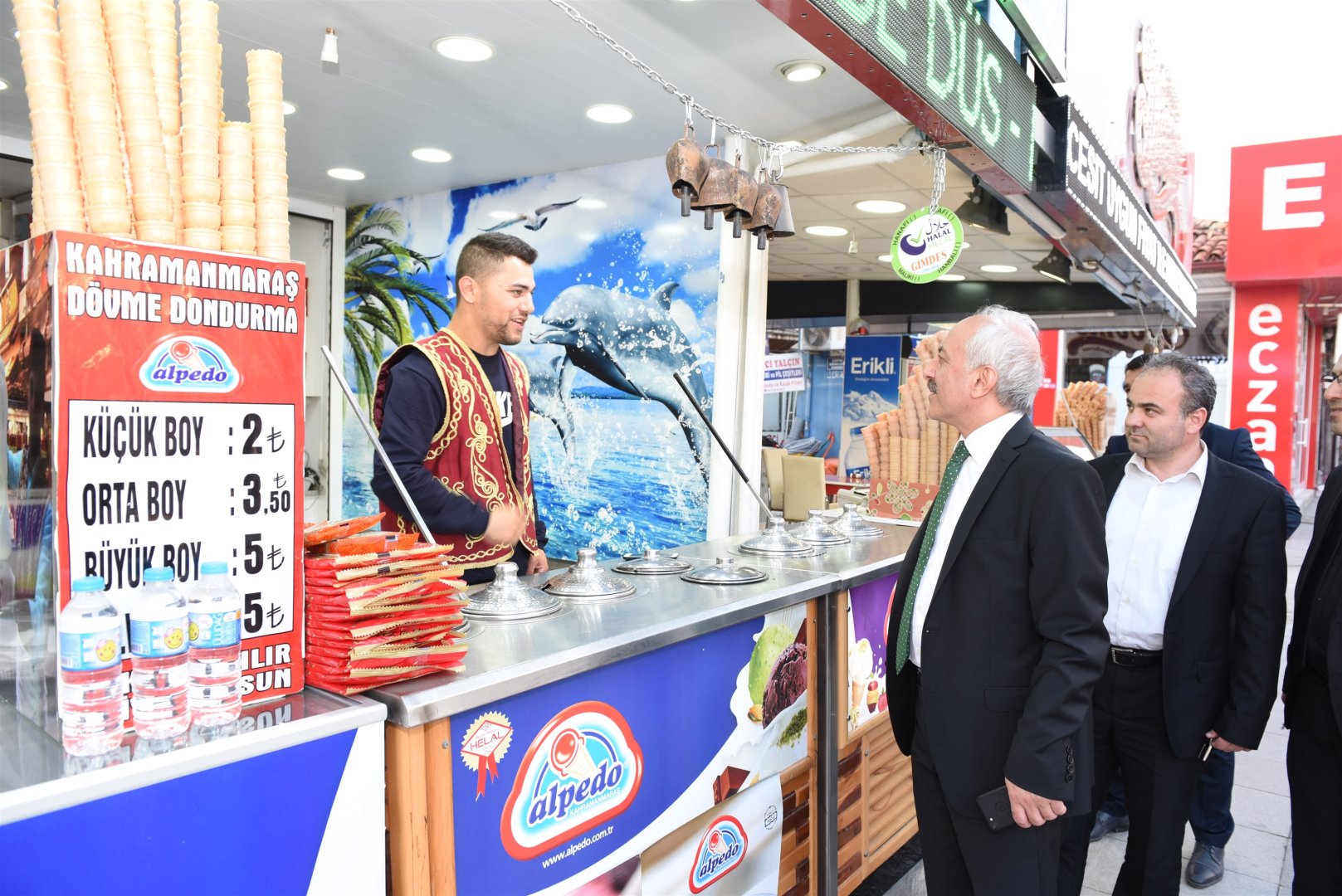 Belediye Başkanı Zeki Gül Ayakkabıcılar Arastasını ziyaret ederek, esnafla sohbet etti.