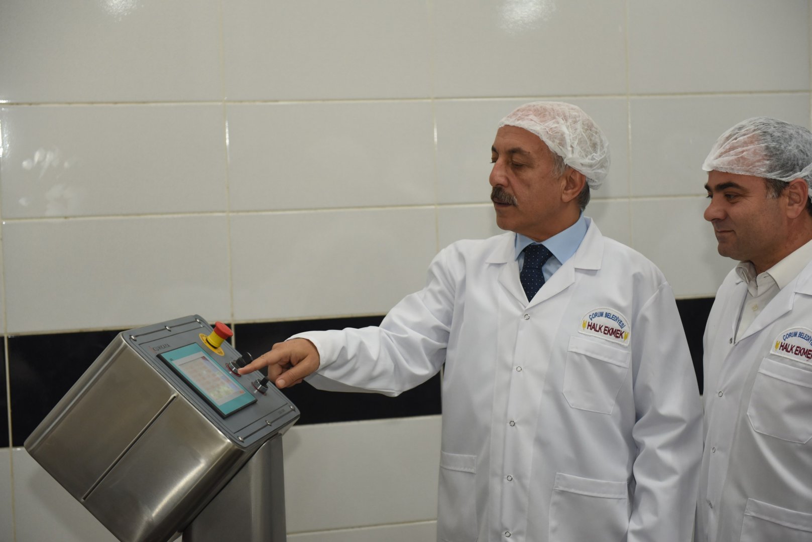 Fabrikada halkın tercih ettiği ekmek çeşitlerinin tamamının üretildiğini belirten Gül; “Sade, çavdarlı, kepekli, tam buğday, sarı unlu, kızarmış kıtır ekmek ve sade ekmek gibi 8 çeşit ekmek üretebiliyoruz. Bunların dışında bir de halkımız tarafından son derece sevilen leblebili ekmek üretiyoruz. Çorum’a özgü bir ekmek üretelim istedik. Leblebi ekmek üretimini başlattık. Halk Ekmek Fabrikamız bünyesinde ve ekmek büfelerimizde çalışan arkadaşlarımızla birlikte 60 personelimiz, tüm hemşehrilerimiz için ekmek üretim ve teminine devam ediyor. Şehrimizin merkezi yerlerinde yer alan 35 noktaya ekmek büfeleri yerleştirdik. Ekmek büfesi yerleştirdiğimiz noktalar herkesin rahatlıkla ulaşacağı noktalar. Ürettiğimiz ekmeklerin dağıtımı, kapalı kasalı, son derece hijyenik şartlara sahip 3 adet aracımızla yapılıyor. Ekmek dağıtımına 05.30’da başlıyoruz. Büfelerde ise ekmek satışımız 7’de başlıyor. Saat 10 ve saat 13 olmak üzere 3 kez dağıtım yapıyoruz. Kandil gecelerinde vatandaşlarımıza kandil simidi dağıtımı yapıyoruz. Ürettiğimiz kandil simidi de Belediyemize bağlı Halk Ekmek Fabrikamızda üretiliyor. Hemşehrilerimiz bu sosyal hizmetlerimizden gayet memnun. Onlar memnuniyetini bizlere ilettikçe biz de seviniyoruz. Bu güzel hizmetin içerisinde yer alan tüm arkadaşlarıma da Belediye Başkanı olarak teşekkür ediyorum.” ifadelerini kullandı