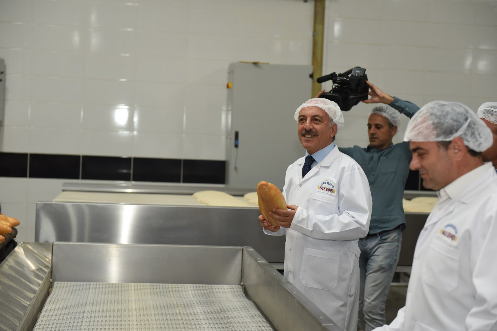 Belediye Başkanı Zeki Gül, yaklaşık bir yıl önce Organize Sanayi bölgesinde kurulan Halk Ekmek Fabrikası’nda incelemelerde bulundu.