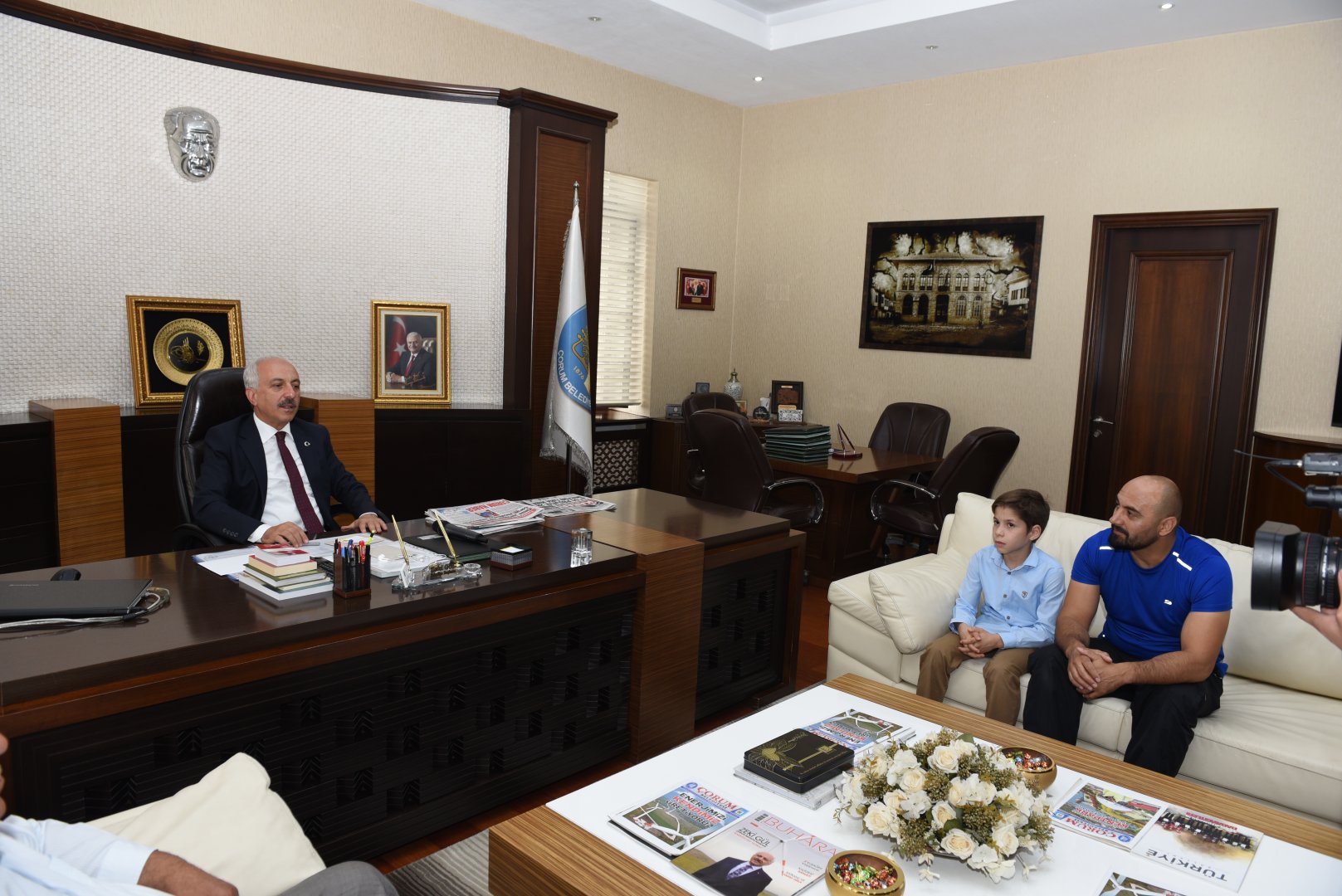 Geçtiğimiz hafta içerisinde Zonguldak’ta gerçekleştirilen Grekoromen Türkiye Güreş Şampiyonası’nda rakibine yenilen ve gözyaşlarına hâkim olamayan 11 yaşındaki Çorumlu Melih Büyükyıldız’ı, Belediye Başkanı Zeki Gül makamında kabul etti.