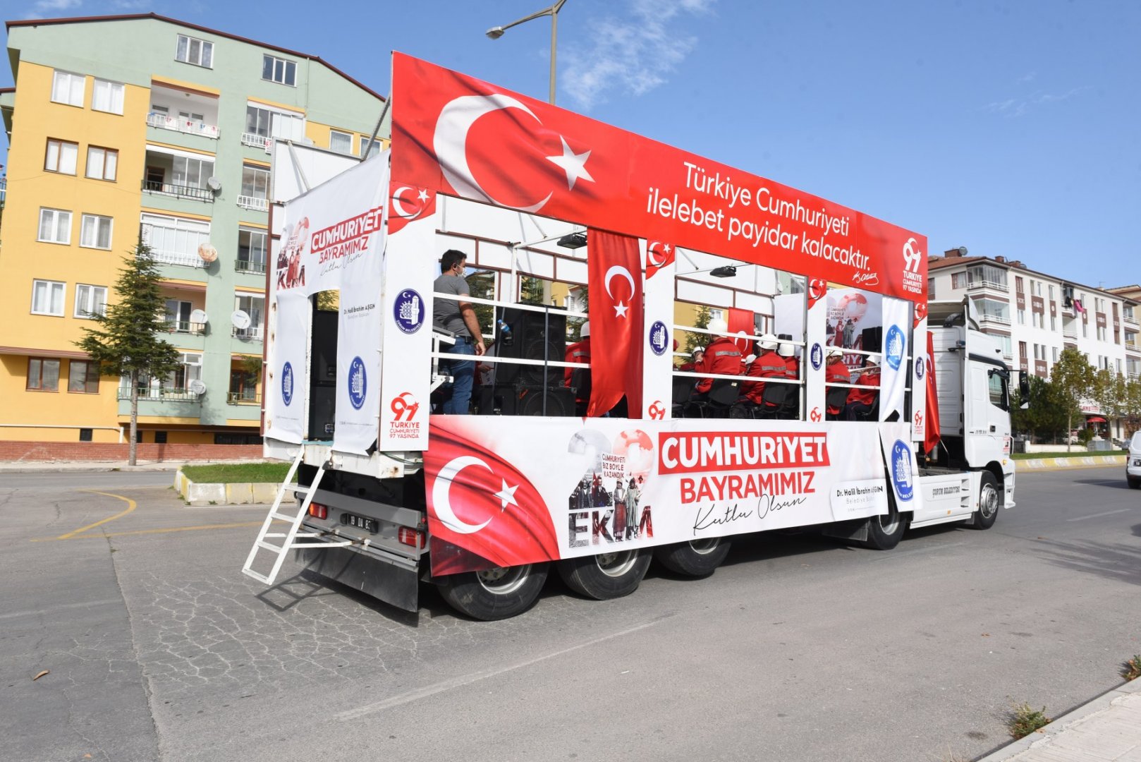 Belediyemiz bayram coşkusunu mahallelere taşıdı. Belediye bando ekibinin yer aldığı tır, mahalleleri gezerek konser verdi. Öte yandan Kadeş Meydanı’nda da gerçekleştirilen bando gösterisi, Cumhuriyet bayramı kutlamalarına renk kattı.