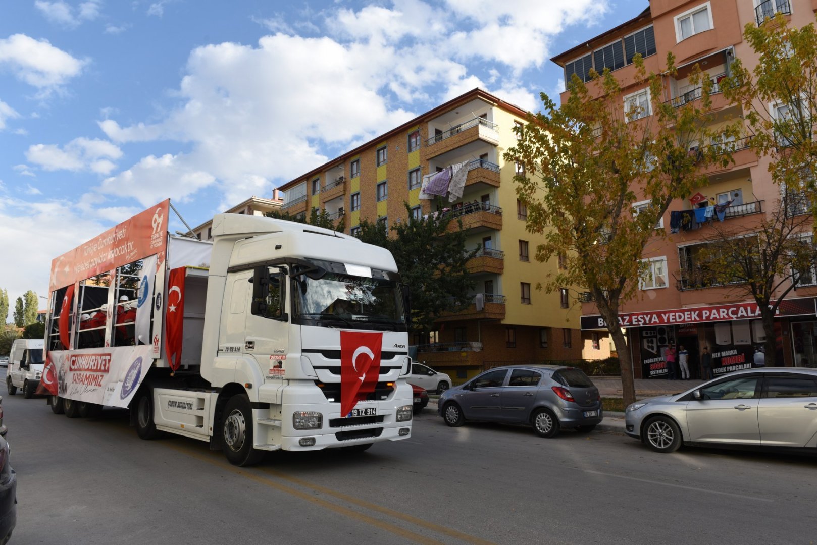 Belediyemiz, pandemi nedeniyle Ramazan ayında başlattığı tır etkinliklerini vatandaşların ilgisi üzerine tüm bayramlarda sürdürüyor. 29 Ekim Cumhuriyet Bayramı’nın 97’nci yıldönümü kutlama etkinlikleri kapsamında bando ekibi bir kez daha yollardaydı. Çorum Belediyesi, bu bayramda da bando ekibinin yer aldığı tır etkinlikleri ile mahallelere konuk oldu. Ellerinde Türk bayrakları ile balkonlara çıkan vatandaşlar da seslendirilen marşlara ve şarkılara eşlik ederek bayram coşkusunu yaşadı. Çorum Belediyesi bando ekibi mahalle gösterilerinin yanı sıra yaşlılarımızı da unutmadı. Kamile ve Hacı Ahmet Akdağ Huzurevi’ne de konuk olan bando ekibi, güngörmüşlerimiz için de birbirinden güzel eserler seslendirdi.
