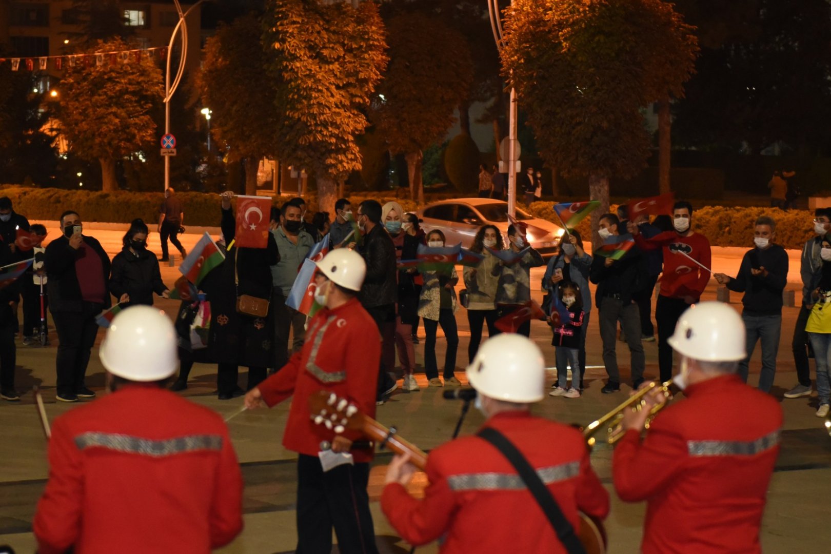Belediye Bando Takımı, Cumhuriyet Bayramı etkinliklerini Kadeş Meydanı’nda verdiği konserle noktaladı. Akşam saatlerinde gerçekleşen konsere vatandaşların ilgisi yoğun oldu. Meydanda toplanan vatandaşlar, ellerinde Türk ve Azerbaycan bayraklarıyla şarkılara eşlik etti.