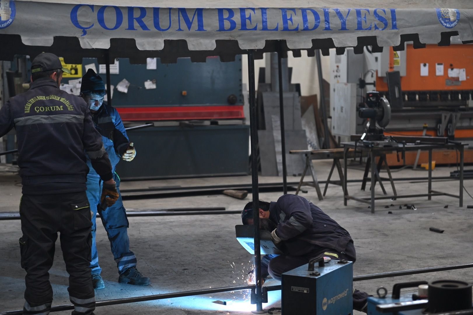 Çorum Belediyesi, deprem bölgesine çadır ve seyyar tuvalet gönderiyor. Makine İkmal Müdürlüğü atölyesinde çadır üretimine başlayan belediye ekipleri, pazar yerlerindeki seyyar tuvaletleri de deprem bölgesine ulaştıracak. Belediye Başkanı Dr. Halil İbrahim Aşgın, çadır ve seyyar tuvalet temini konusunda vatandaşlardan da destek istedi.