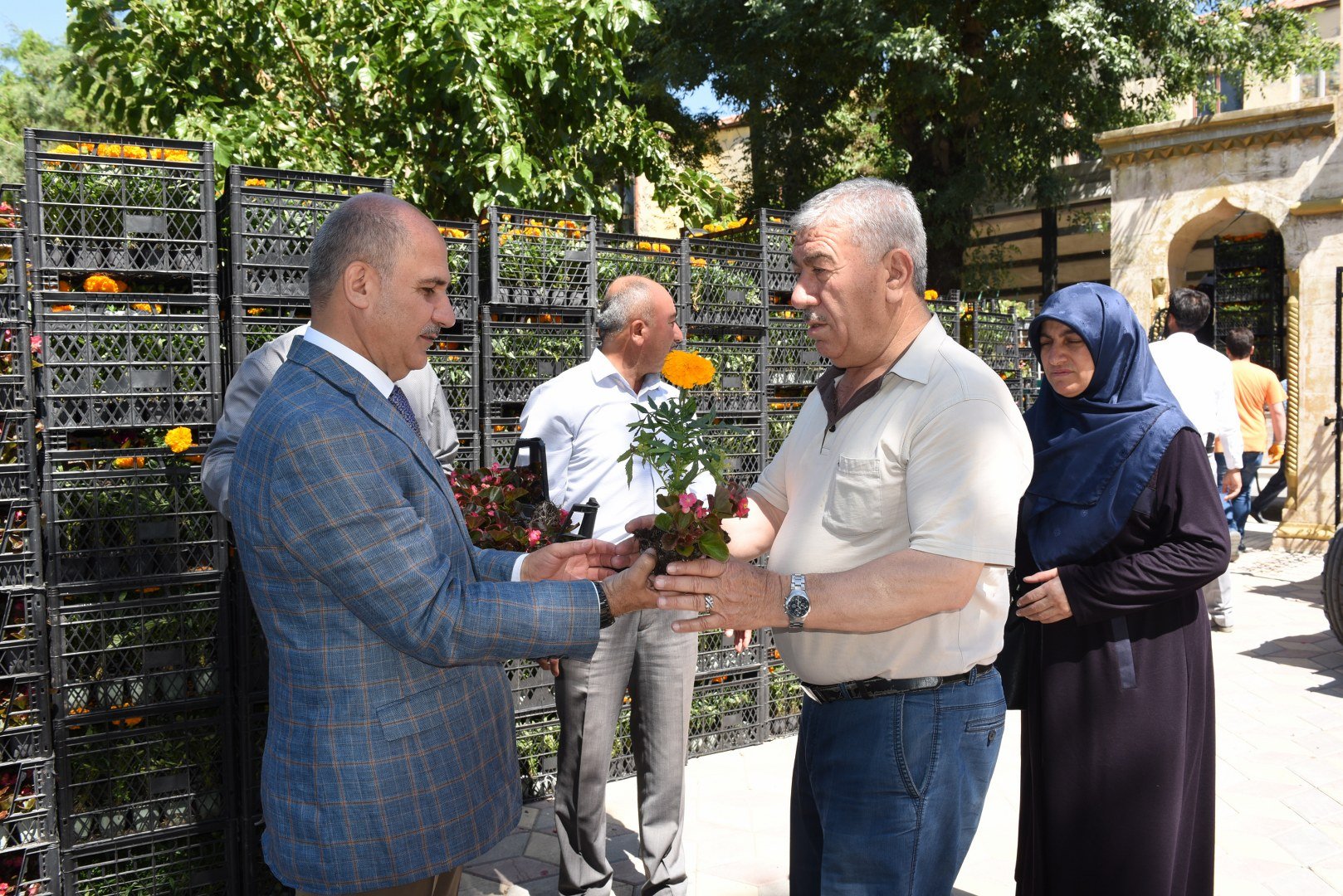 Bayram öncesi mezarlara mevsimlik çiçek dağıtımının geleneksel hale getirdiklerini vurgulayan Belediye Başkan Yardımcısı Ahmet Yabacıoğlu, “bu bayramda inşallah 60 bin mevsimlik çiçek dağıtacağız vatandaşlarımıza bunu ücretsiz vereceğiz mezarlarını ziyarete gelen vatandaşlarımız buradan çiçeklerini alarak kendi geçmişlerinin mezarlarına dike bilecekler. Yine kurban bayramında da 60 bin mevsimlik çiçek dağıtacağız bir yıl içerisinde iki bayramda toplamda belediye olarak 120 bin mevsimlik çiçeği dağıtmış olacağız. Bu vesileyle hemşehrilerimizin tutmuş olduğu oruçların vermiş oldukları sadakaların, fitrelerin ve zekatların kabul olmasını ve ülkemizin, milletimizin, islam aleminin barışına kurtuluşuna vesile olmasını dileyerek ramazan bayramımızı ağız tadıyla geçirmemizi temenni ediyorum” dedi.