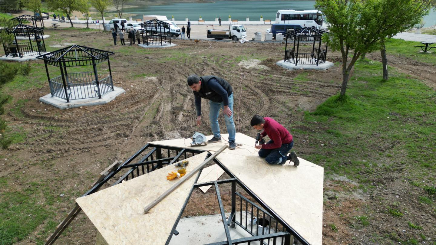 mesire alanında çalışmalar devam ediyor. Çorum Belediyesi, baraj etrafında