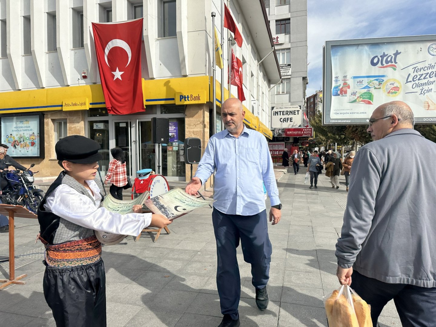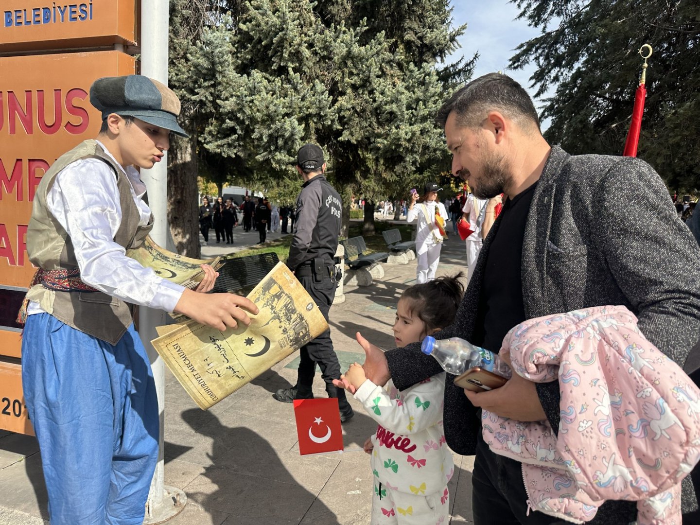 Osmanlı dönemini yansıtan özel kıyafetleriyle ilgi çeken öğrenciler, ilk olarak Cumhuriyet Bayramı etkinlikleri kapsamında ilk resmi törenin yapıldığı Atatürk Anıtı’nda Cumhuriyet Mecmuası dağıttı. Vali Doç.Dr. Zülkif Dağlı, Belediye Başkanı Dr. Halil İbrahim Aşgın ve protokol üyelerinin ardından şehrin farklı bölgelerinde dağıtılan Cumhuriyet Mecmuası elden ele dolaştı.