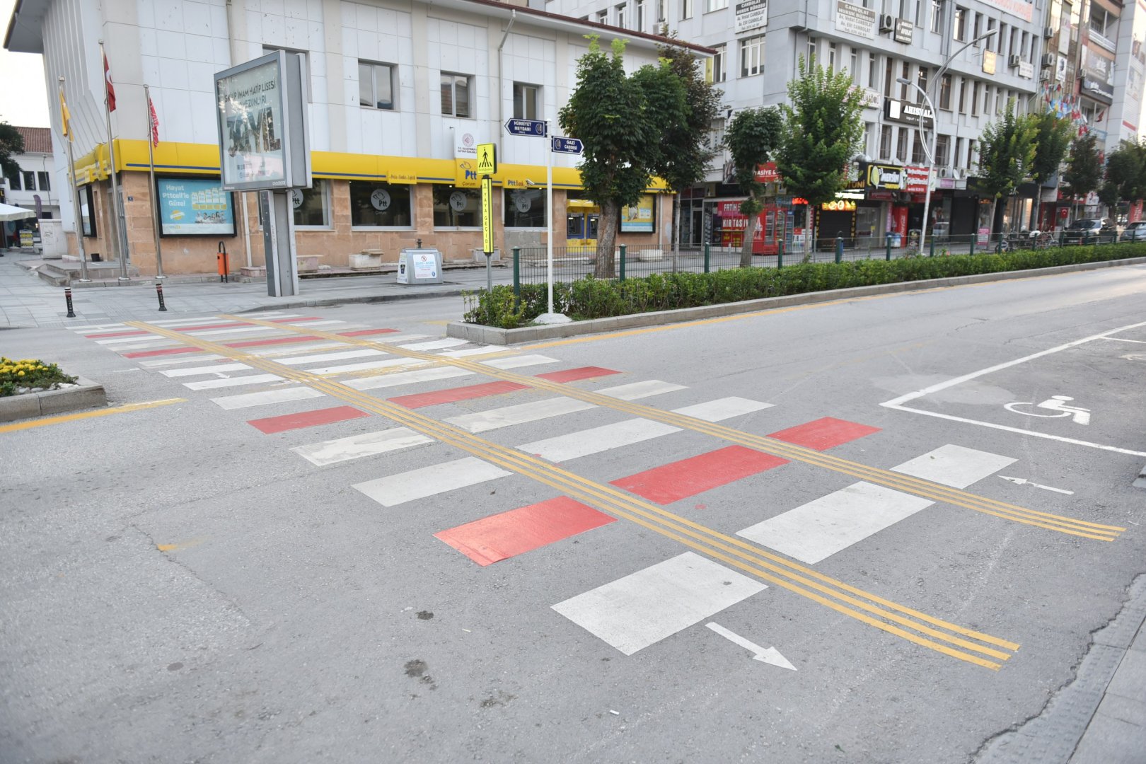 İçişleri Bakanlığı öncülüğünde başlatılan ve yurt geneli uygulanan yaya güvenliğini önceleyen “Yayalar Kırmızı Çizgimizdir” uygulaması 2021 yılında hayata geçmişti. Eskiyen kırmızı çizgiler Çorum Belediyesi tarafından yenilendi.