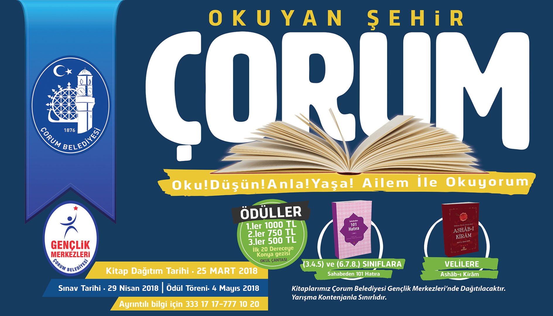 Belediye Başkan Yardımcısı Turhan Candan yarışmaya ilkokul üçüncü sınıftan sekizinci sınıfa kadar bütün öğrencilerin katılabileceğini kaydetti. Öğrencilerin “Sahabeden 101 Hatıra”, velilerin ise “Ashab-ı Kiram” kitaplarını okumaları gerektiğini belirten Belediye Başkan Yardımcısı Turhan Candan kitapların Çorum Belediyesi Gençlik Merkezleri’nde dağıtılmaya başlandığını dile getirdi.