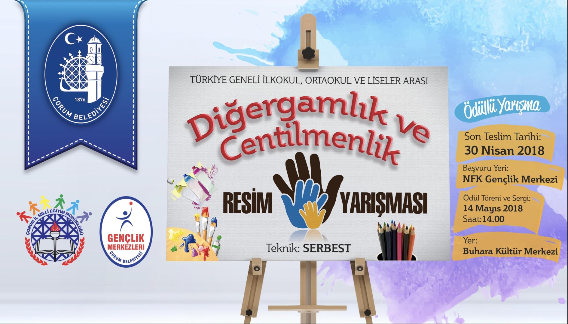 Belediye Başkan Yardımcısı Turhan Candan ortaklaşa düzenlenen resim yarışmasında dereceye giren öğrencilere çeşitli hediyeler verileceğini belirtti. Candan “Çorum İl Milli Eğitim Müdürlüğü ve Çorum Belediyesi Gençlik Merkezleri tarafından ortaklaşa Diğergamlık ve Centilmenlik konularını içeren resim yarışması düzenledik. Serbest stile göre yapılacak olan resim yarışmasına İlkokul, Ortaokul ve Lise öğrencileri katılabilecek. Yarışmaya katılacak öğrencilerimiz Çorum Belediyesi Necip Fazıl Kısakürek Gençlik Merkezi’ne başvuru yaparak resimlerini 30 Nisan tarihine kadar teslim edebilecek. Yapılacak olan değerlendirmenin ardından 14 Mayıs’ta Buhara Kültür Merkezi’nde yapılacak olan törenle dereceye giren öğrencilere ödülleri verilecek” dedi.