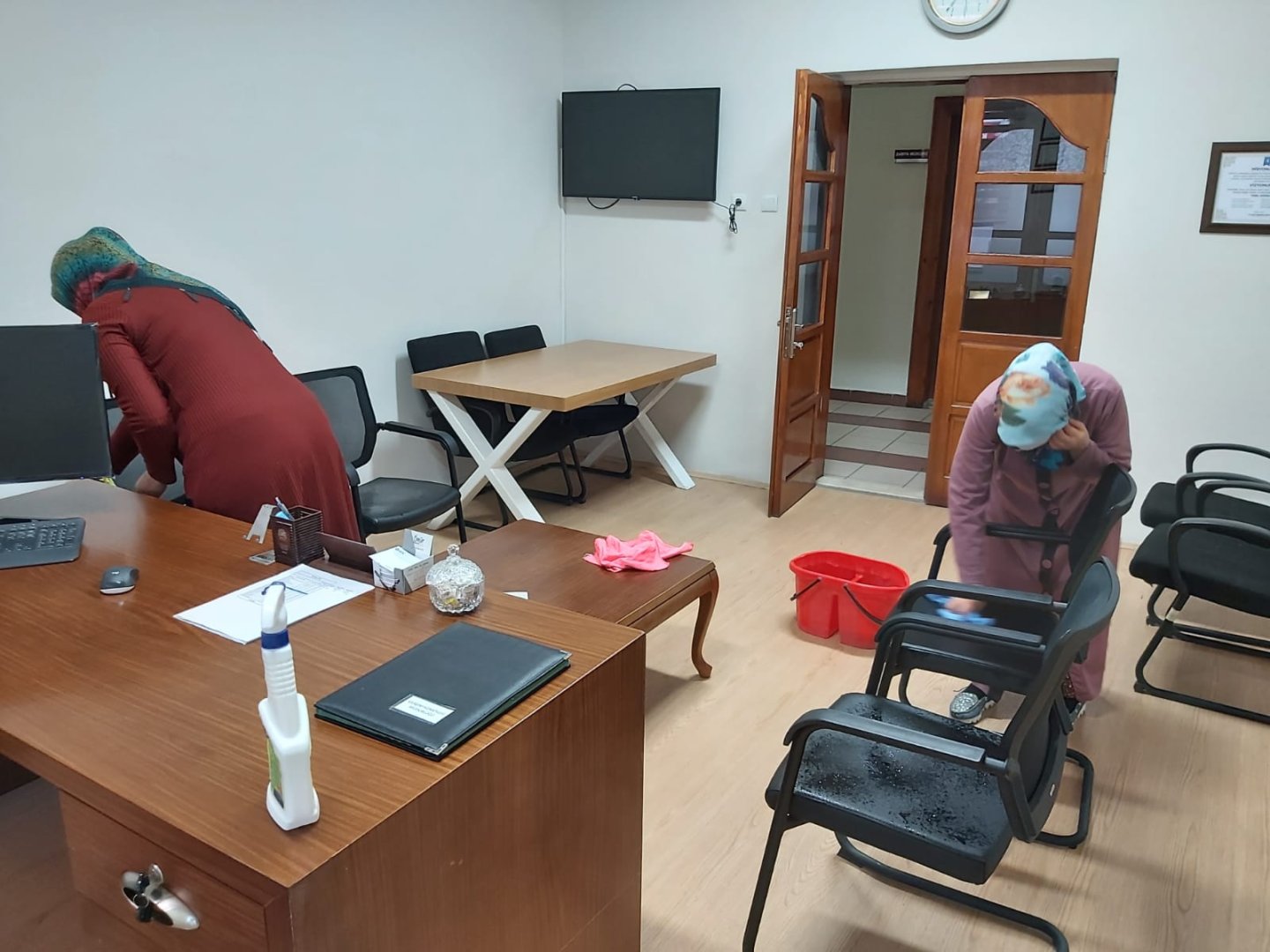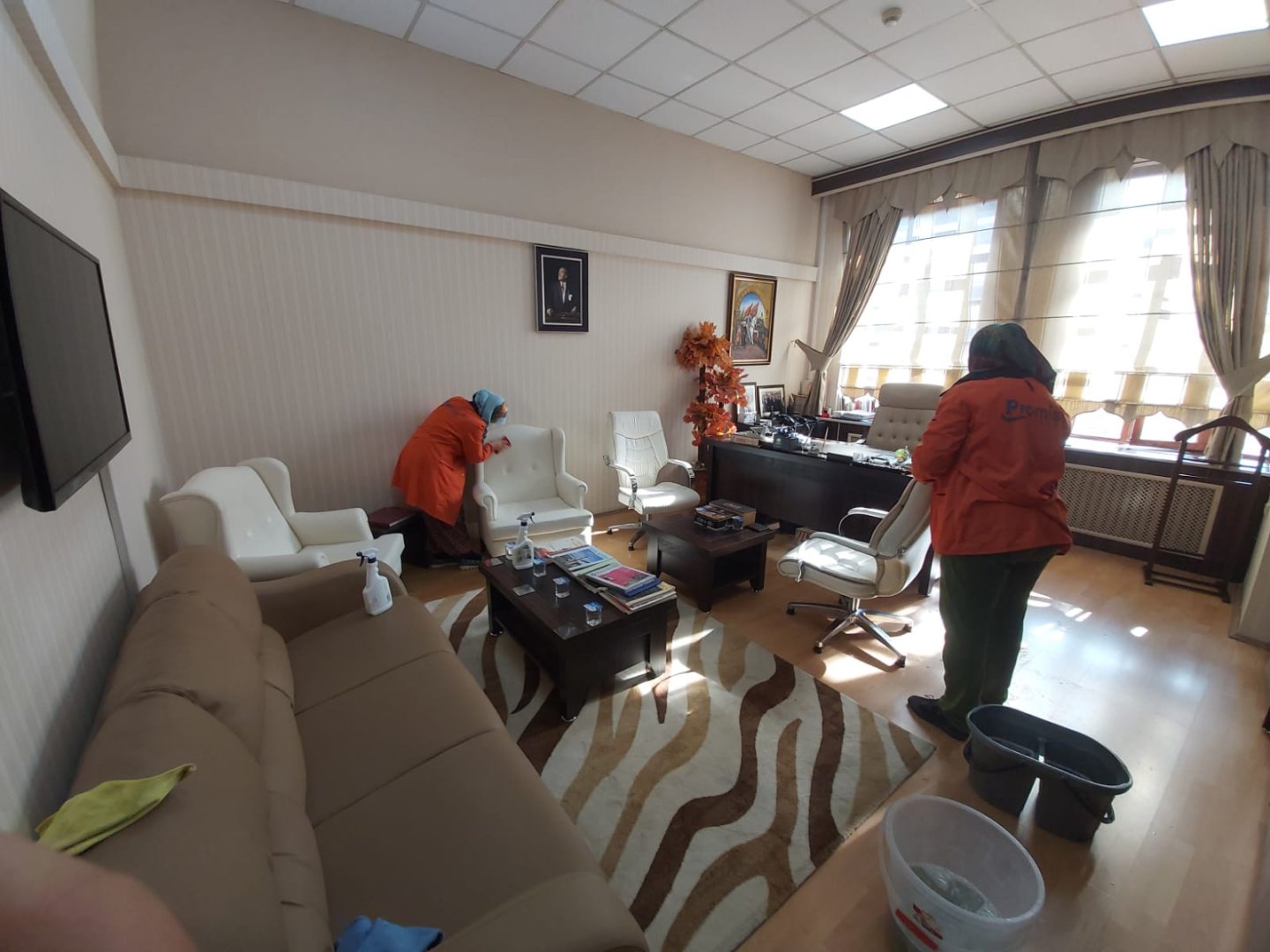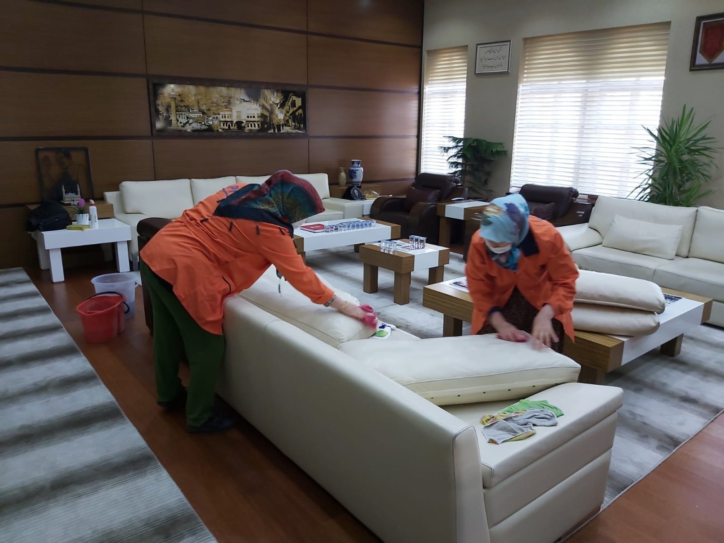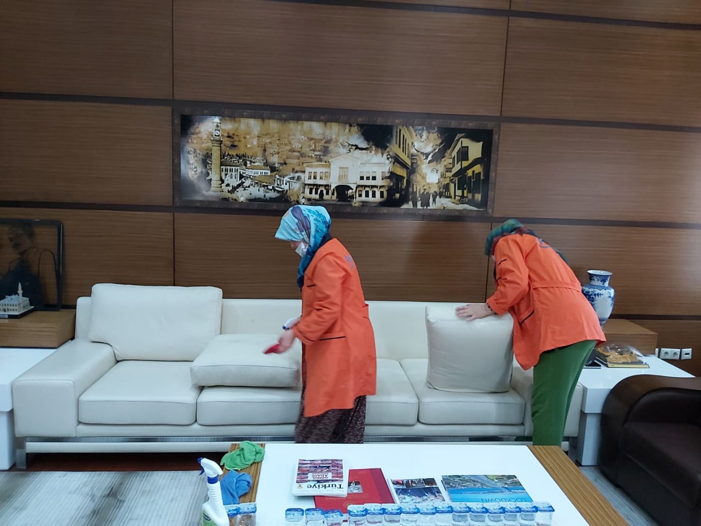 Genel temizlik ve Korona virüse karşı yayılmayı önleyici tedbir çalışmaları kapsamında, Belediye hizmet binasında detaylı bir şekilde dezenfekte ve temizlik çalışması yapıldı.