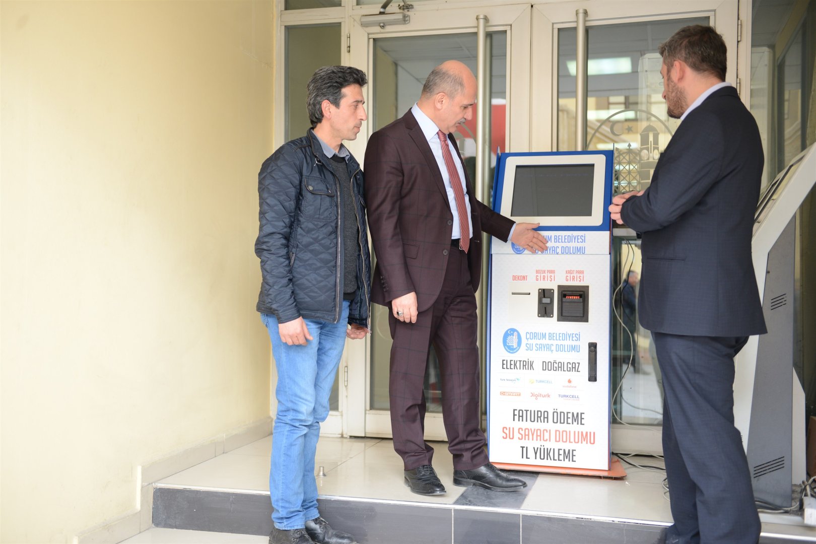 Çorum’un çeşitli noktalarına konulan KİOSK cihazlarıyla vatandaşların su kartı yükleme, su faturası ödeme işlemlerini gerçekleştirebileceklerini belirten Yabacıoğlu; “Halkımıza verdiğimiz hizmetleri daha hızlı ve ulaşılabilir şekilde vermek için çalışmalarımız devam ediyor. Bu çalışmalardan biri de vatandaşlarımızın belediyeye gelmeden de su kartlarını doldurabilmelerini ve su faturalası gibi borçlarını ödemelerini sağlamak. Bunun için Pratik İşlem Ödeme Kuruluşu ile protokol imzaladık. 15 Temmuz Hürriyet Parkı yanında bulunan otobüs durağına ve Buharaevler Mahallemizde bulunan petrol istasyonuna konulacak KİOKS cihazlarından vatandaşlarımız, 7 gün 24 saat akıllı su saati dolumu ve su faturası ödemesi yapabilecekler. Yine Pratik İşlem merkezlerinde emlak vergisi tahsilatı yapılabilecek. Pratik İşlem Ödeme kuruluşu ile entegreli olarak çalışan Çorum Türk Telekom bayilerinden de kartlı sayaç dolumu ve fatura ödemeleri yapılabilecek. Pratik işlem Merkezi’nin Çorum’da 120 temsilciliği bulunuyor. Öte yandan 35 Türk Telekom bayiinde ve 35 Halk Ekmek büfesi olmak üzere 190 noktada akıllı sayaç dolumu ve su faturası ödemesi yapılabilecek. Bir süredir 10 noktada devam eden tahsilat işlemleri 1 Nisan tarihinden itibaren tüm noktalarda hemşehrilerimizin hizmetinde olacak” dedi.