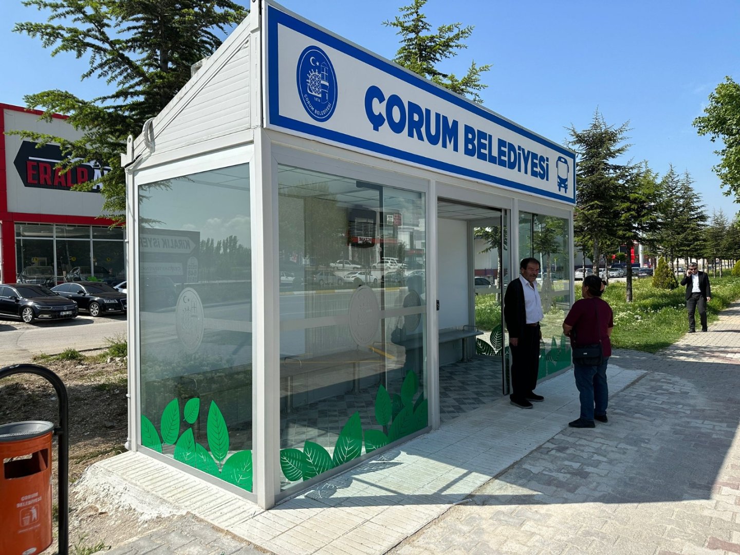 Çorum Belediyesi’nin kendi imkânlarıyla yaptığı klimalı otobüs durakları, vatandaşları yazın sıcaktan, kışın soğuktan koruyacak. Belediye Başkanı Dr. Halil İbrahim Aşgın, belediye imkânlarıyla ilk klimalı otobüs durağını yaptıklarını söyledi. Oturma alanı, sensorlu kapısı, kliması ve otobüs bilgi ekranlarının yer aldığı otobüs durağı Makine İkmal Bakım ve Onarım Müdürlüğü’nde imal edildiğini açıklayan Başkan Aşgın, yapımı tamamlanan ilk durağın Hitit Üniversitesi Erol Olçok Eğitim ve Araştırma Hastanesi karşısına monte edildiğini söyledi.
