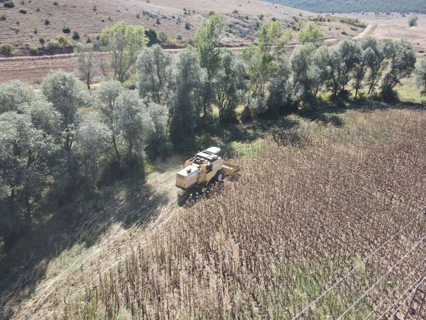 Düvenci Beldesi yakınlarında şehre su temininde önemli katkı sağlayan Konaklı Su Terfi İstasyonu etrafında 28 yıldır atıl vaziyette duran araziyi tarıma kazandırarak yağlık ayçiçeği ekimi yapan Çorum Belediyesi ayçiçeğini biçiyor.