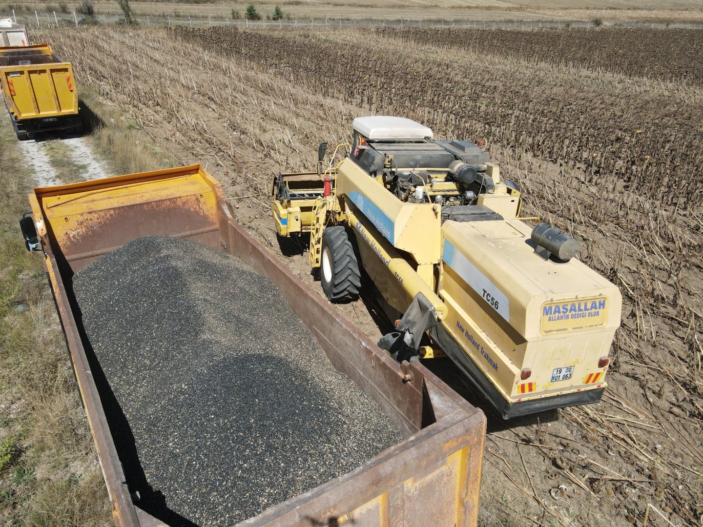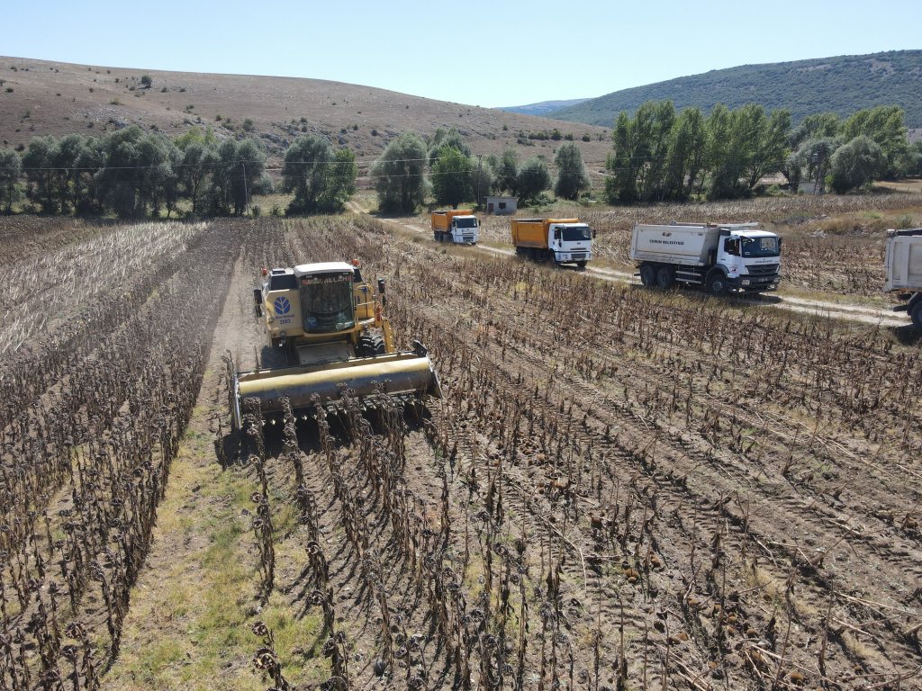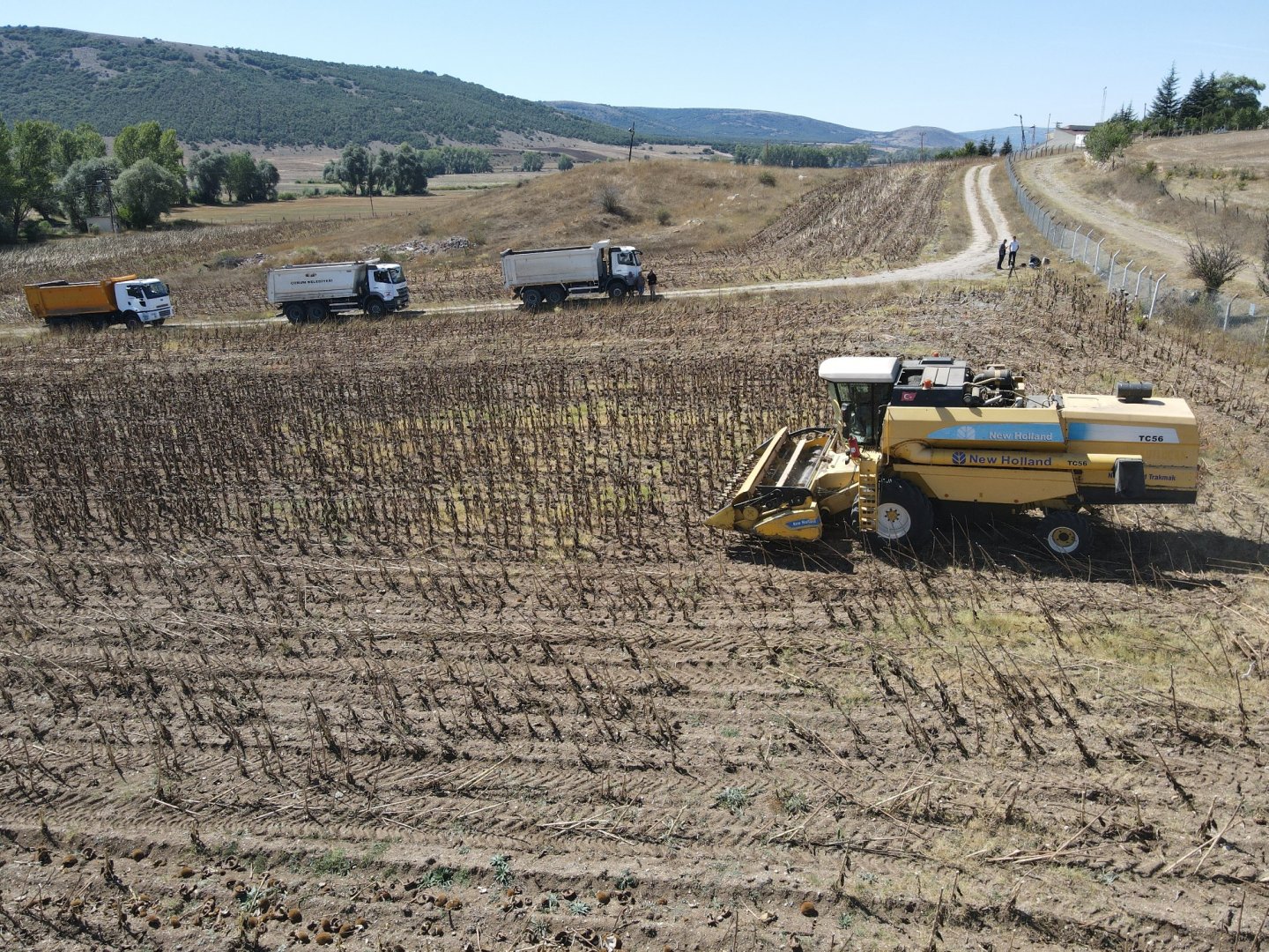 Cumhurbaşkanı Recep Tayyip Erdoğan’ın çağrısı üzerine 28 yıldır ekilmeyen 80 dönümlük arazide yağlık ayçiçeği eken Çorum Belediyesi, hasada başladı.