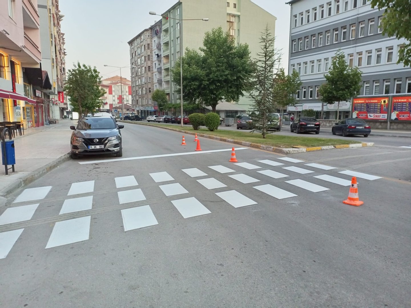 Başkan Yardımcısı Çöplü “Ekiplerimiz, Şenyurt Caddesi, Osmancık Caddesi, Mehmet Akif Ersoy Caddesi, Dr. Sadık Ahmet Caddesi, Gazi Caddesi, Dr. İlhan Gürel Caddesi ve Akşemseddin Caddesi’nde ihtiyaca göre şerit ayırıcı, bordür boyama, yaya çizgisi ve yol çizgi çalışmalarını gerçekletirdiler.” dedi.