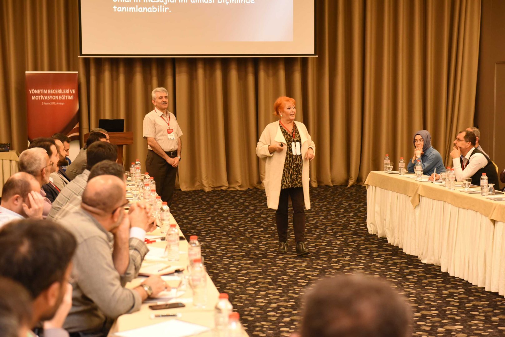 Türkiye Belediyeler Birliği tarafından organize ve finanse edilen ve Amasya Fimar Otel’de 1-3 Kasım 2019 tarihleri arasında düzenlenen eğitim kampına Belediye Başkanı Halil İbrahim Aşgın, Başkan Yardımcıları ve birim müdürleri katıldı. Dr. Gülgün Karahalil tarafından programın ilk gününde ‘İletişim Becerilerini Geliştirme ve Stres Yönetimi’ konulu eğitim semineri verildi. Dr. Gülgün Karahalil insanlara üslup ve yaklaşımın önemine değindi. Kişilerle ikili diyaloglarda beden dilinin öneminden söz eden Dr. Gülgün Karahalil “Sözcükler dışında, yüz ifadeleri, vücut duruşu, kıyafetler, el ve kol duruşu, oturma biçimi, hitap şekli etkili iletişimde ve halkla ilişkilerde büyük önem arz eder. İletişimde beden dili ve ses tonun önemi oldukça önemlidir. İletişimde Söz yüzde 7, ses tonu yüzde 38, beden dili ise yüzde 55 etkilidir. İnsanlarla etkili iletişim etkili konuşma ve üsluba dayanır. Özellikle belediye gibi kurumsal kimliği olan çalışma alanlarında, vatandaşla doğru iletişim kurmanın, kuruma getireceği çok büyük faydalar getirir” dedi.