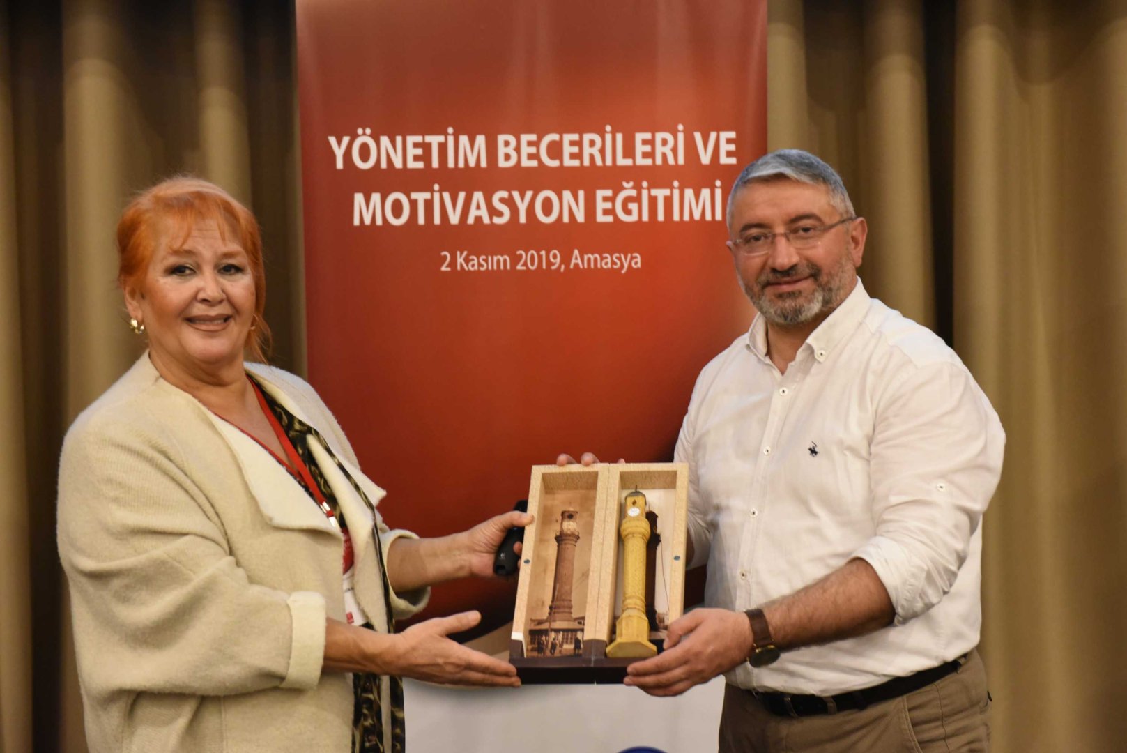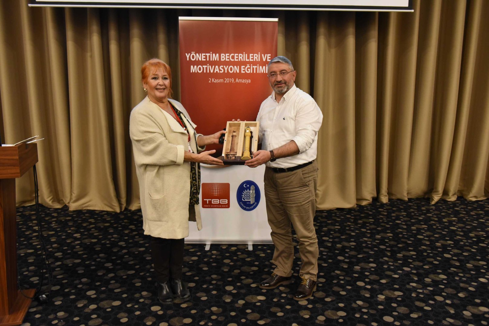 Seminerin ardından Belediye Başkanı Dr. Halil İbrahim Aşgın, Dr. Gülgün Karahalil’e Çorum’un simgesi Saat Kulesi maketi hediye etti.