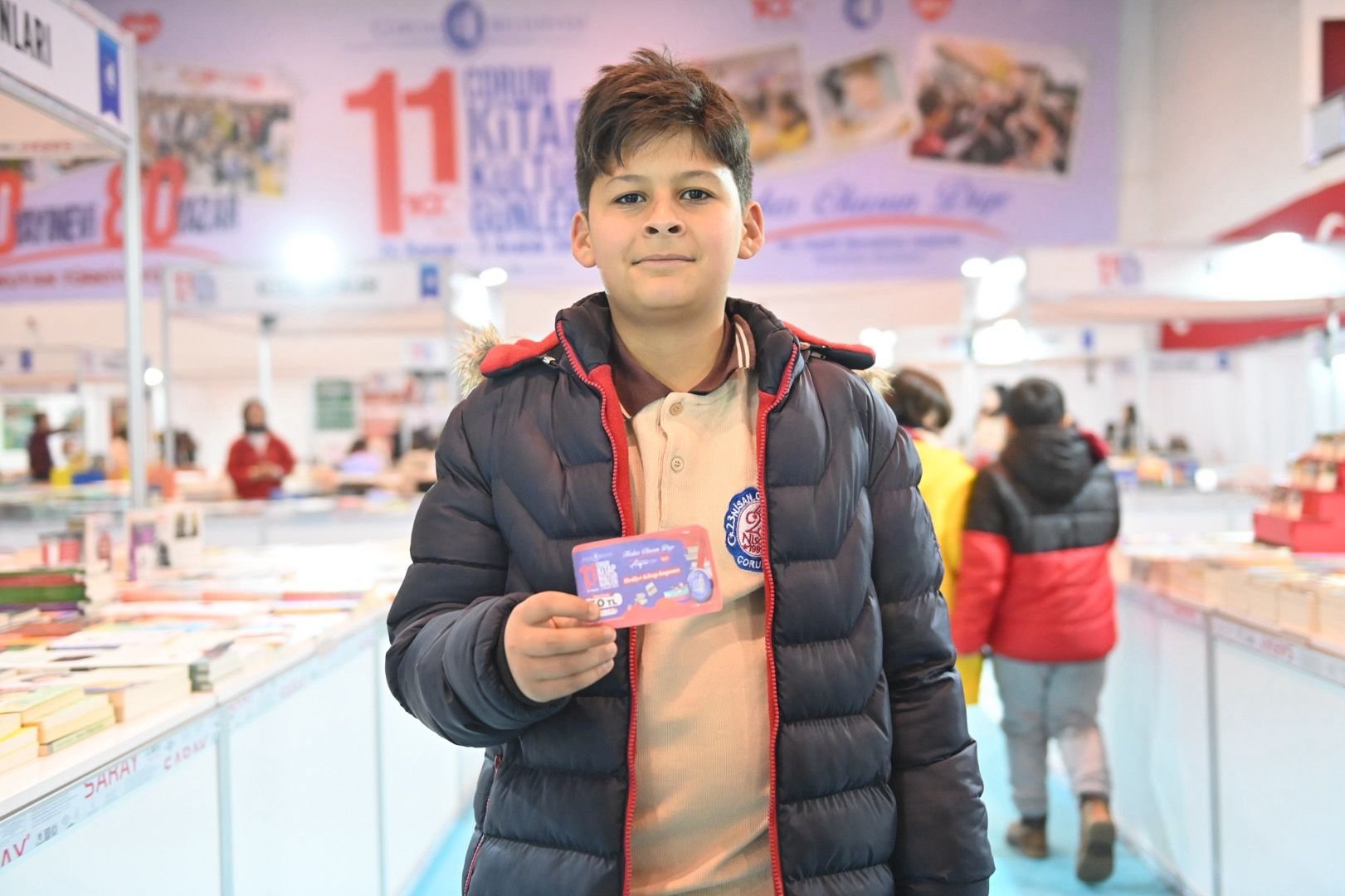 Çorum Belediyesi tarafından bu yıl 11.’si düzenlenen Kitap Kültür Günleri, kitapseverler tarafından yoğun ilgi görüyor. Okullarıyla birlikte fuarı gezen öğrenciler Çorum Belediyesi’nin verdiği hediye kitap kuponlarıyla alışveriş yapıyor.