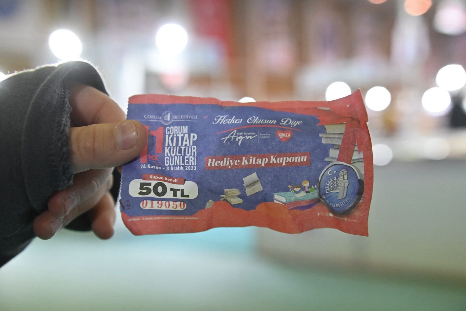 Çorum Belediyesi, 11. Kitap Kültür Günleri’nde 20 bin öğrenciye 50 TL değerinde hediye kitap kuponu veriyor. Hediye kuponlarla kitap alan öğrenciler, Belediye Başkanı Dr. Halil İbrahim Aşgın’a teşekkür etti.