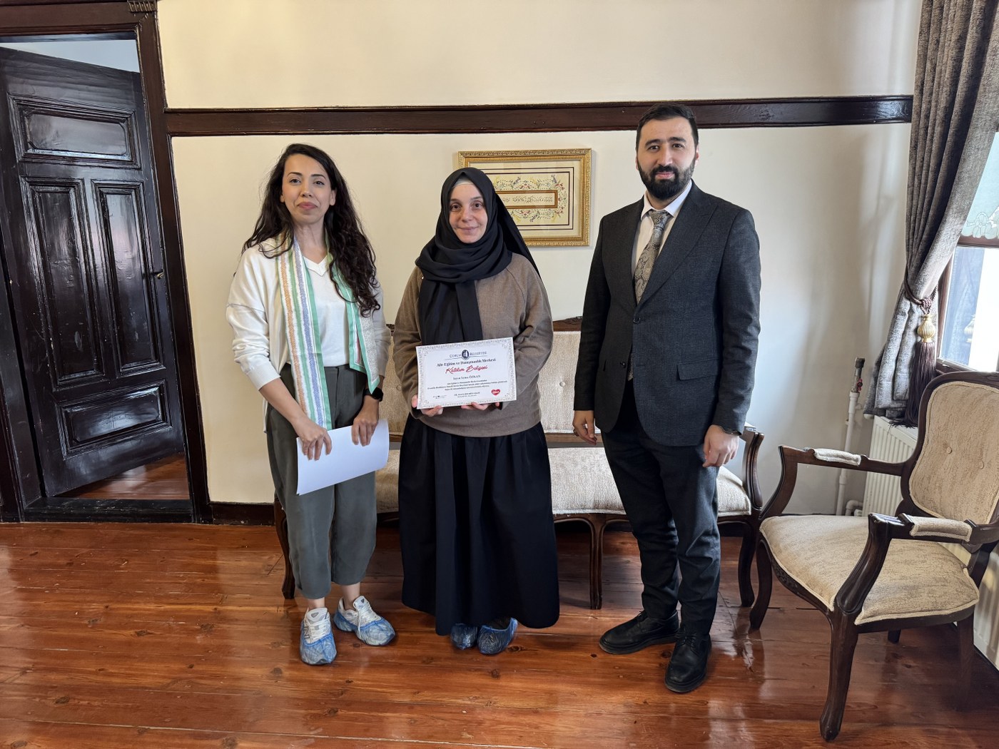 Eğitimlerin tamamlanmasının ardından katılımcılara Çorum Belediyesi Kadın ve Aile Hizmetleri Müdürü Mustafa Yaşar ve Uzman Klinik Psikolog Seda Karaca tarafından sertifika verildi.